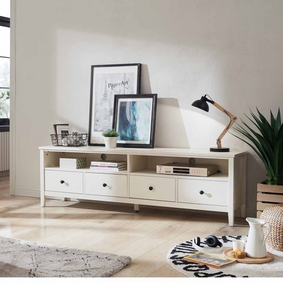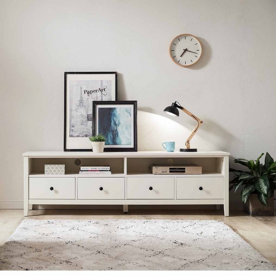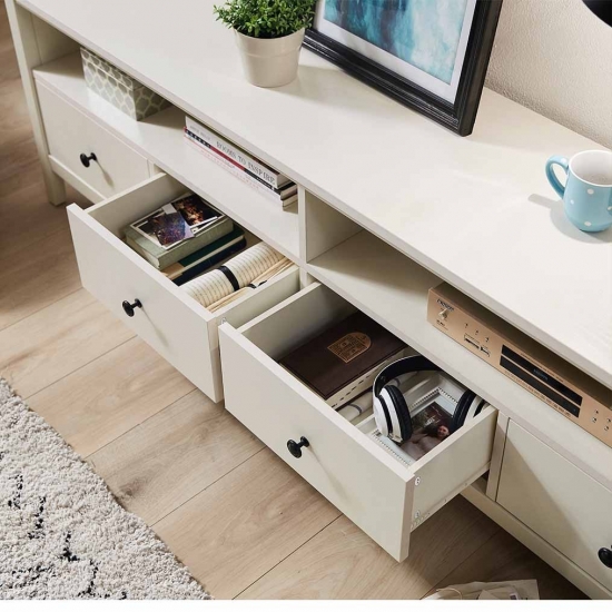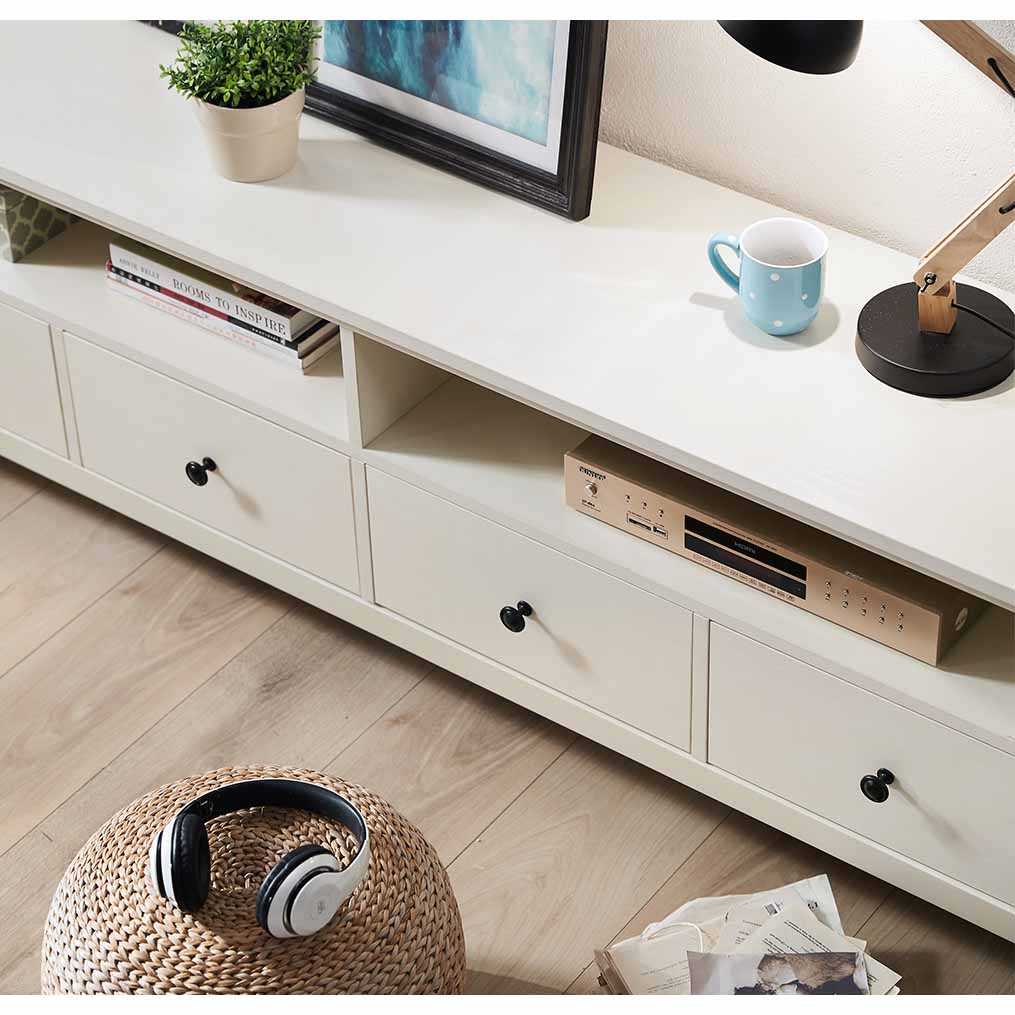 ด้วยพื้นผิวขนาดใหญ่ คุณจึงมีพื้นที่กว้างขวางสำหรับวางทีวีด้านบนหรือติดตั้งบนผนังก็ได้ แท่นวางทีวีนี้มาพร้อมกับบานตู้เก็บของ 2 บานและชั้นโชว์ 2 ชั้น และอิสระในการตกแต่งตามรสนิยมการออกแบบภายในบ้านของคุณ ขาตั้งนี้ไม่ได้มีไว้สำหรับวางทีวีเท่านั้น วางประดับผนังหรือเพิ่มการจัดดอกไม้ตามที่คุณต้องการ
