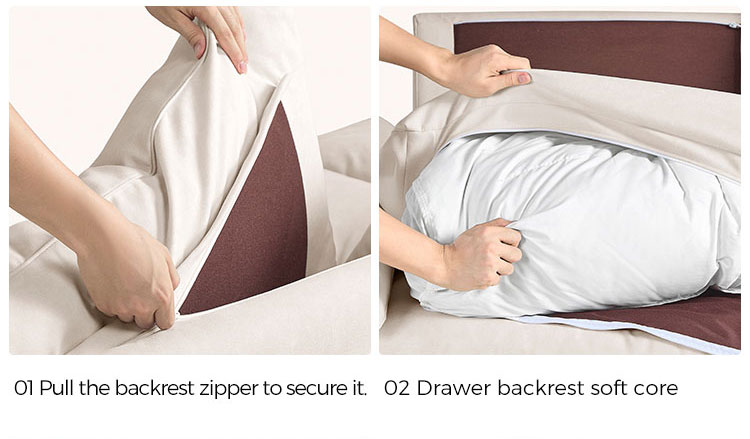ผ้าพรีเมี่ยม: หุ้มด้วยผ้าสีเบจขาวคุณภาพสูง ทนทาน ให้สัมผัสที่นุ่มนวลและทำความสะอาดง่าย