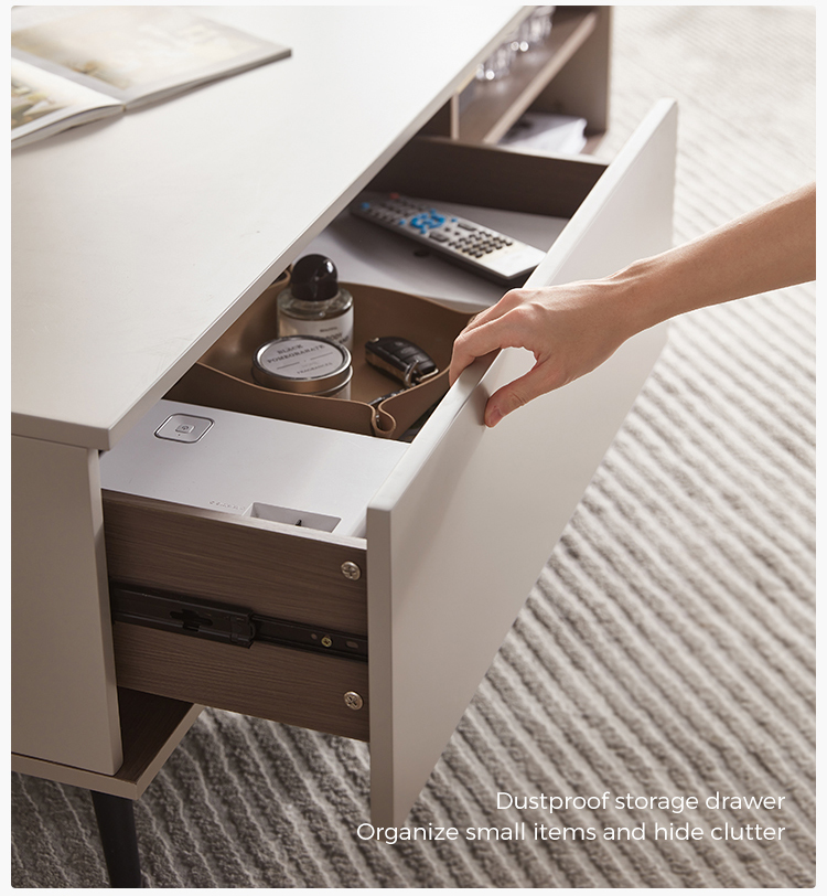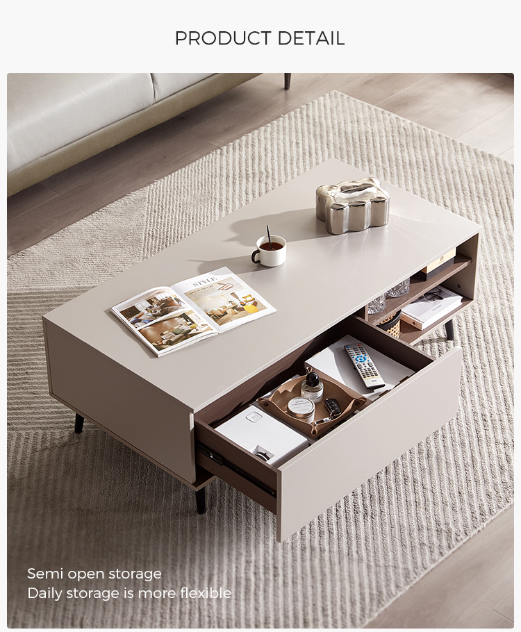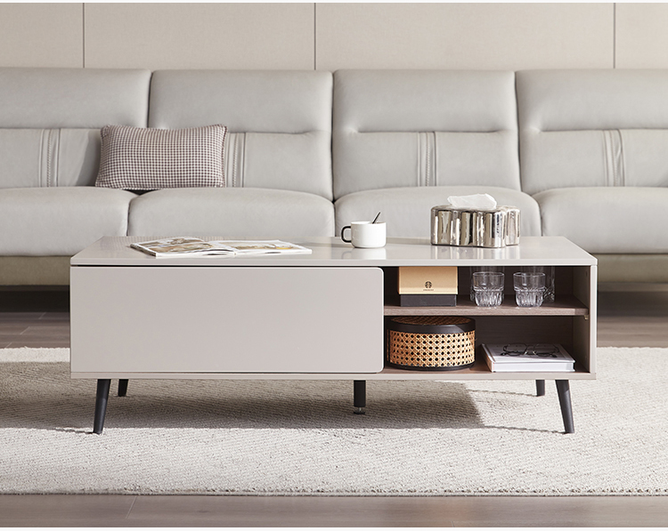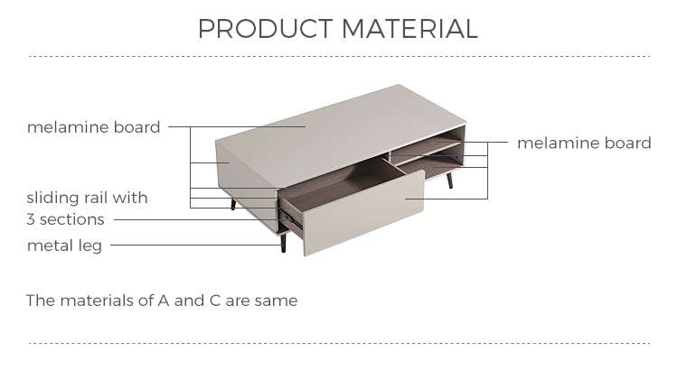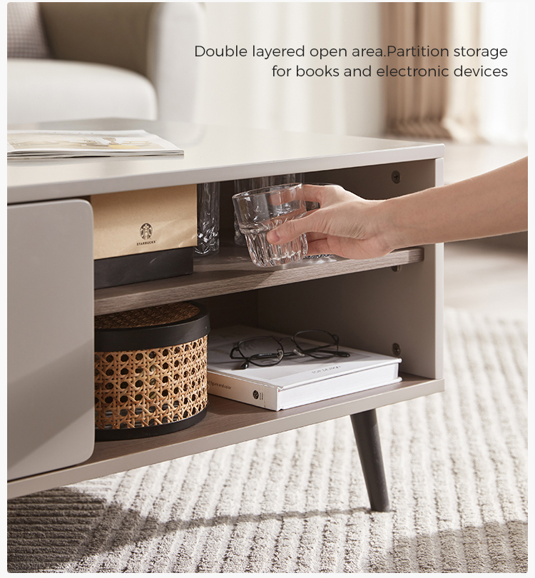 ด้านบนของโต๊ะกาแฟนี้สำหรับห้องนั่งเล่นทำจาก MDF ที่มีความแข็งแรงสูงซึ่งกันน้ำทนต่อการสึกหรอและทนอุณหภูมิสูงและดูแลได้ง่ายมาก การตกแต่งโต๊ะกาแฟสำหรับห้องนั่งเล่นที่ราบรื่นช่วยให้ผู้คนได้รับเอฟเฟกต์ภาพสดชื่น