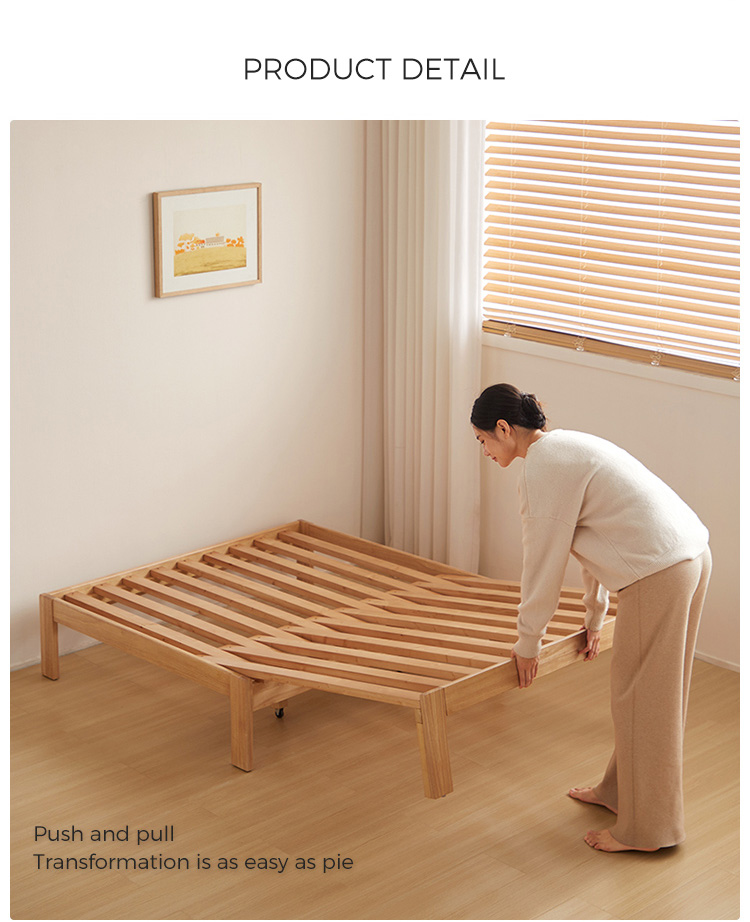 เตียงปรับขยายได้ของเราทำจากไม้เนื้อแข็งคุณภาพเยี่ยม มอบทางเลือกในการนอนที่หลากหลายด้วยดีไซน์ที่ปรับได้อันล้ำสมัย โครงเตียงสามารถยืดออกได้อย่างง่ายดายเพื่อรองรับความต้องการที่เพิ่มมากขึ้นหรือแขกเพิ่มเติม จากนั้นจึงสามารถดึงกลับเพื่อประหยัดพื้นที่เมื่อไม่ได้ใช้งาน