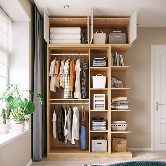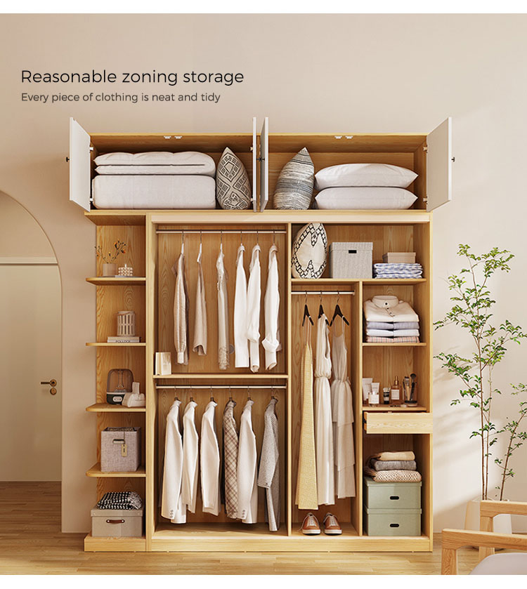 ตู้เสื้อผ้า ใช้งานได้อเนกประสงค์มากสำหรับเก็บของใช้ในบ้านในห้องนอน ตู้เสื้อผ้าขนาดใหญ่นี้มีราวแขวน 2 อัน และมีพื้นที่แขวนเต็มความยาวได้สะดวก เหมาะสำหรับเสื้อผ้าที่ยาวและยับง่าย เช่น ชุดเดรส ชุดสูท และเสื้อโค้ท การออกแบบหลายชั้นช่วยให้เสื้อผ้าที่แตกต่างกันมีตำแหน่งของตัวเอง