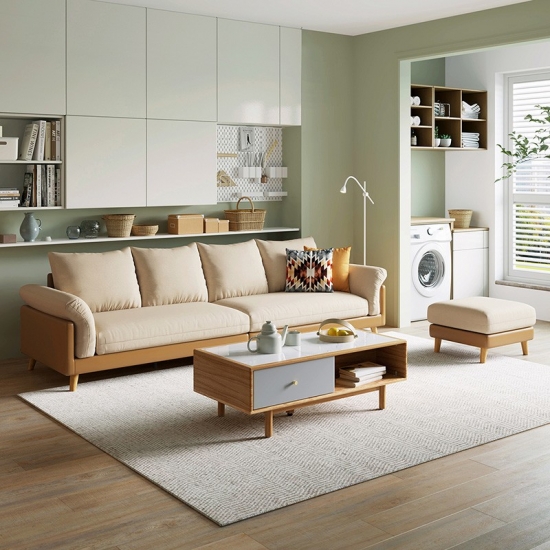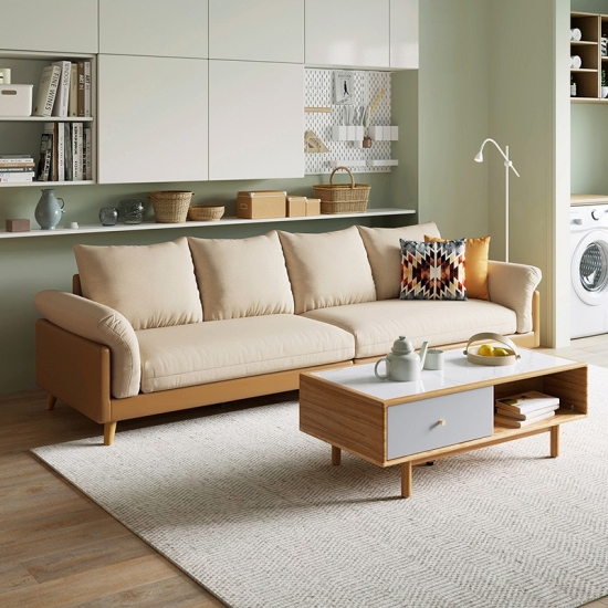 LINSY โซฟาผ้าไฮเทคสีเบจสำหรับใช้ในบ้านโรงแรม S023 |