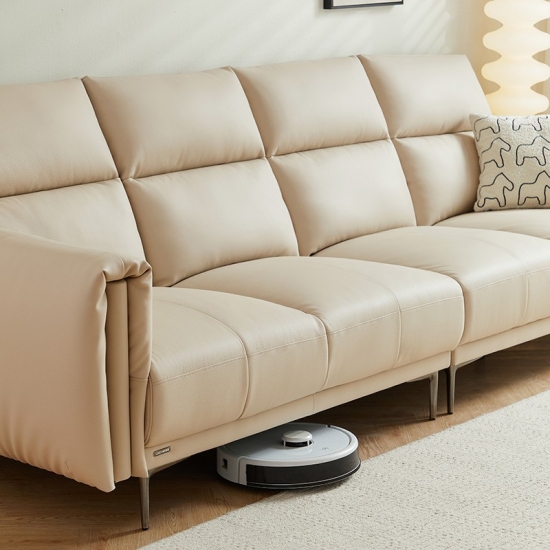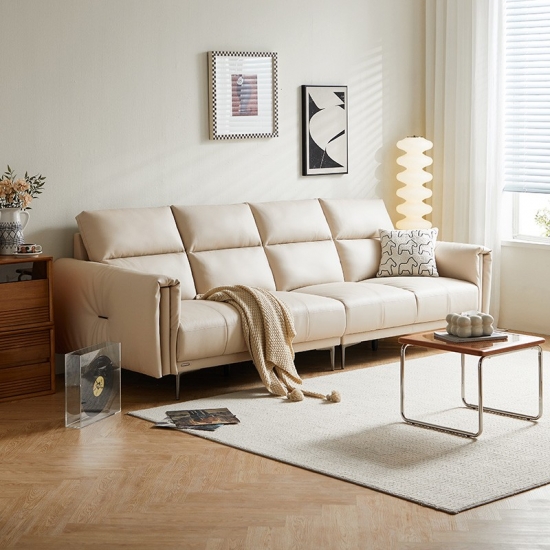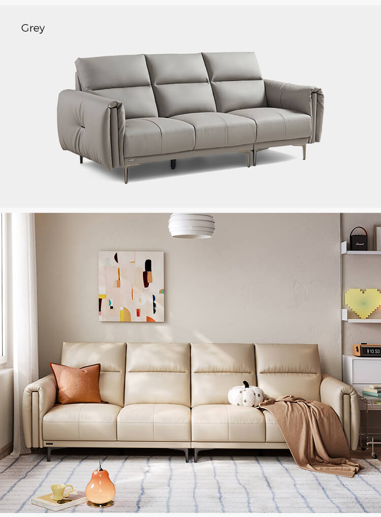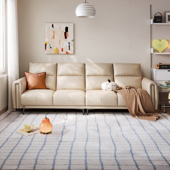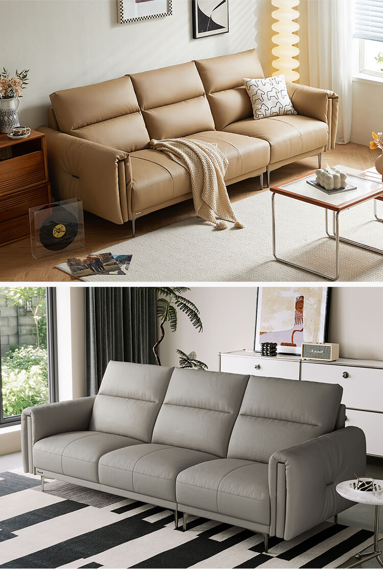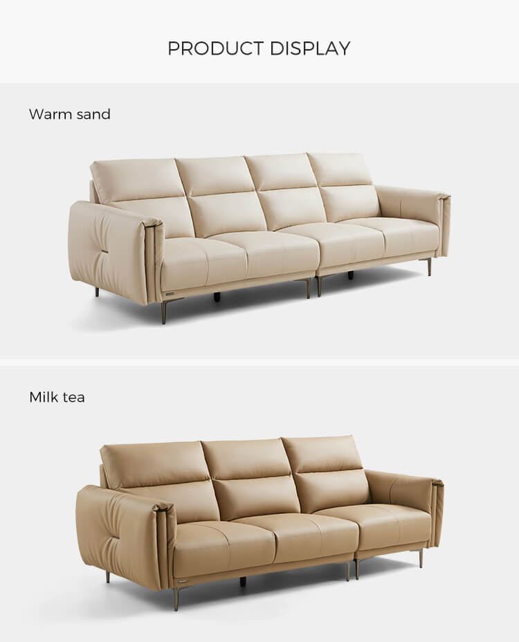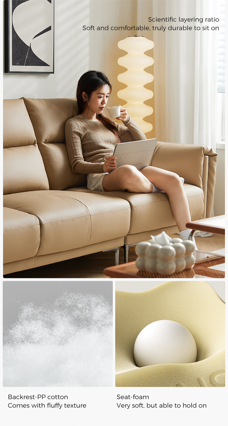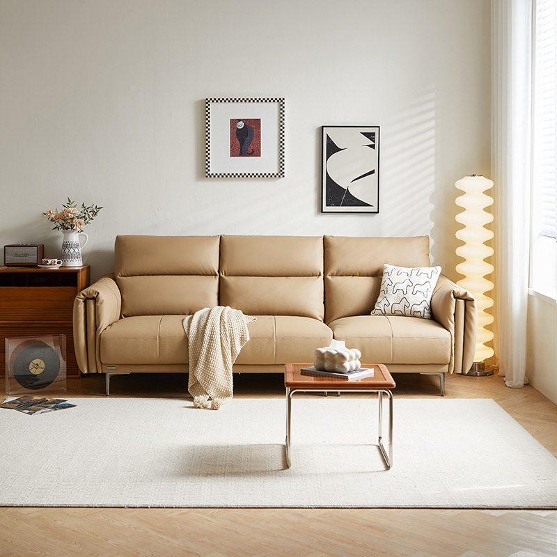 7LINSY โซฟา 3 ที่นั่งหนังสีเบจสำหรับห้องนั่งเล่น PS206-A