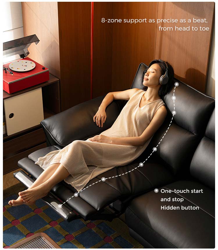 *ฟังก์ชันปรับเอนด้วยไฟฟ้า: เก้าอี้ปรับเอนแบบอิสระที่ทำงานเงียบและนุ่มนวลเพื่อความสะดวกสบายส่วนบุคคลเพียงแค่สัมผัสปุ่ม