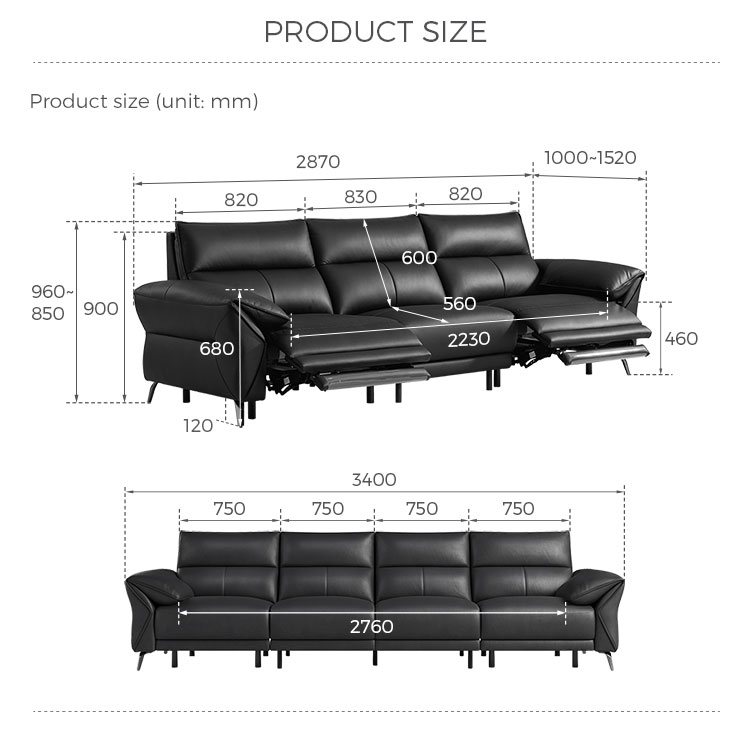 โซฟาปรับเอนหนังสีดำ LINSY รุ่น G282-C |