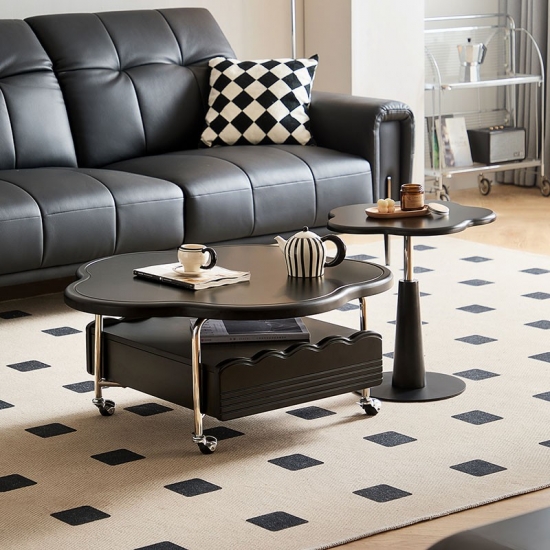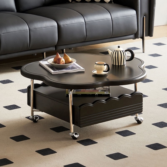 เพิ่มความทันสมัยให้กับห้องนั่งเล่นของคุณด้วยโต๊ะกาแฟเคลื่อนที่รูปเมฆสีดำนี้ ชิ้นงานอันเป็นเอกลักษณ์ชิ้นนี้ได้รับแรงบันดาลใจจากการออกแบบร่วมสมัย โดยผสมผสานเส้นโค้งที่เป็นธรรมชาติเข้ากับการใช้งานในเมือง โดดเด่นด้วยพื้นผิวเคลือบด้านหรือสีดำเงา (เลือกได้) และล้อหมุนสี่ล้อเพื่อการเคลื่อนย้ายที่ง่ายดาย รูปร่างที่ลื่นไหลสร้างจุดสนใจที่โดดเด่น ขณะที่ท็อปโต๊ะที่แข็งแรงให้พื้นที่สำหรับเครื่องดื่ม หนังสือ หรือของตกแต่ง