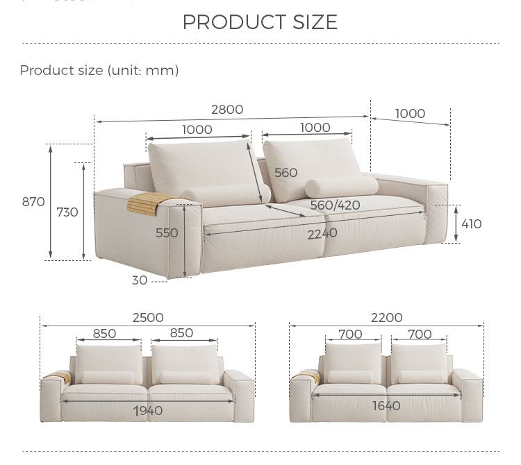 ดีไซน์โซฟาขนาดใหญ่สไตล์โมเดิร์น: กว้างขวางนั่งได้สี่คน มอบพื้นที่กว้างขวางและรูปทรงที่เรียบง่ายทันสมัย