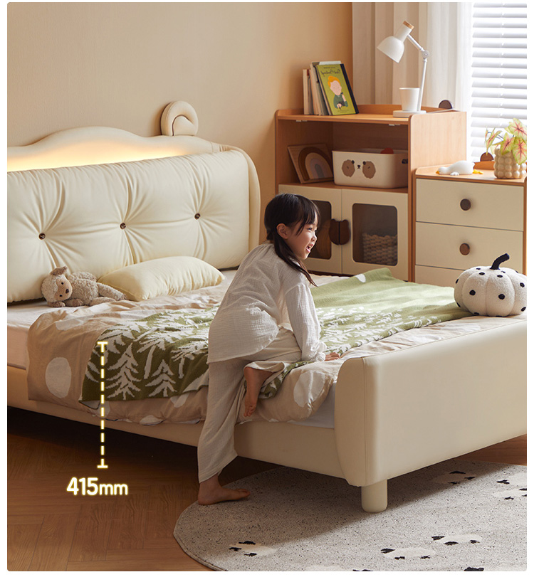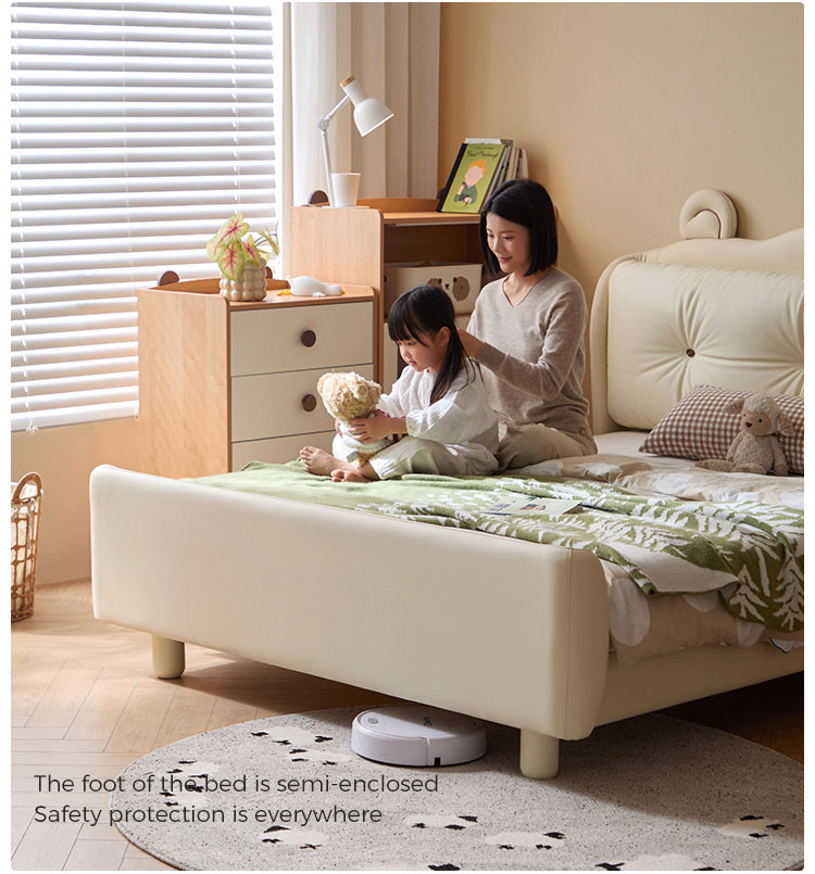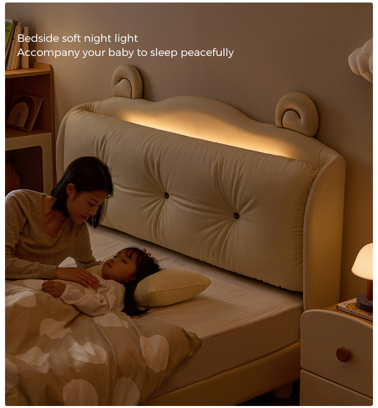 7LINSY เตียงเด็ก สีครีมขาว พร้อมหัวเตียงหนัง TBC357-A