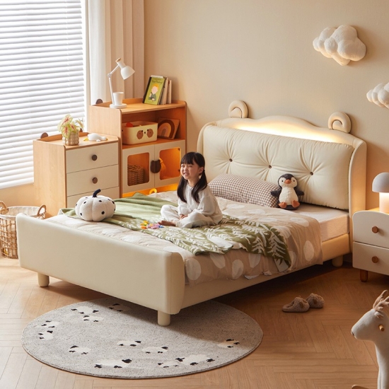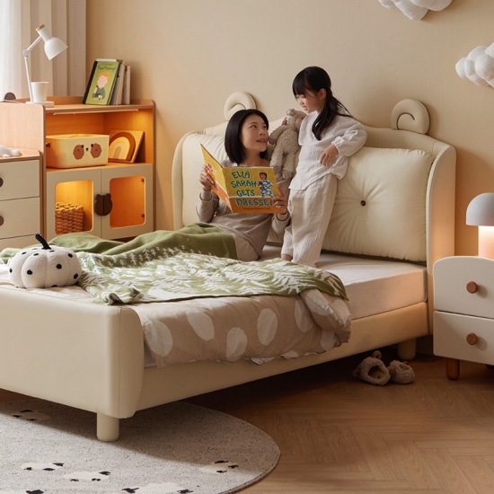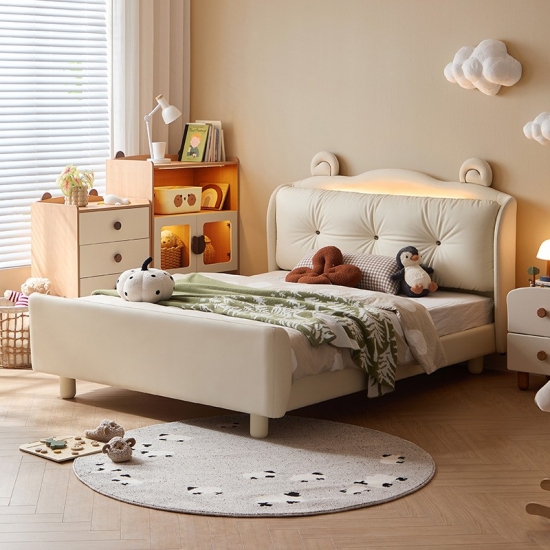 LINSY เตียงเด็ก สีครีมขาว พร้อมหัวเตียงหนัง TBC357-A |