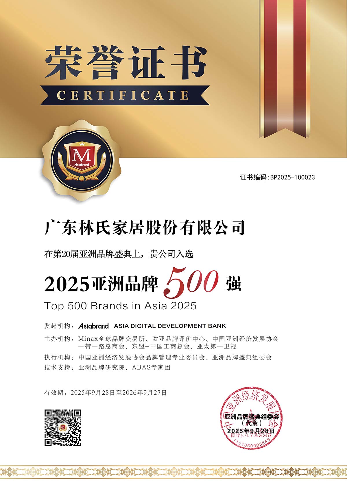LINSY Home Furniture - 500 แบรนด์ชั้นนำของเอเชีย ประจำปี 2025