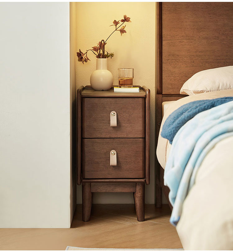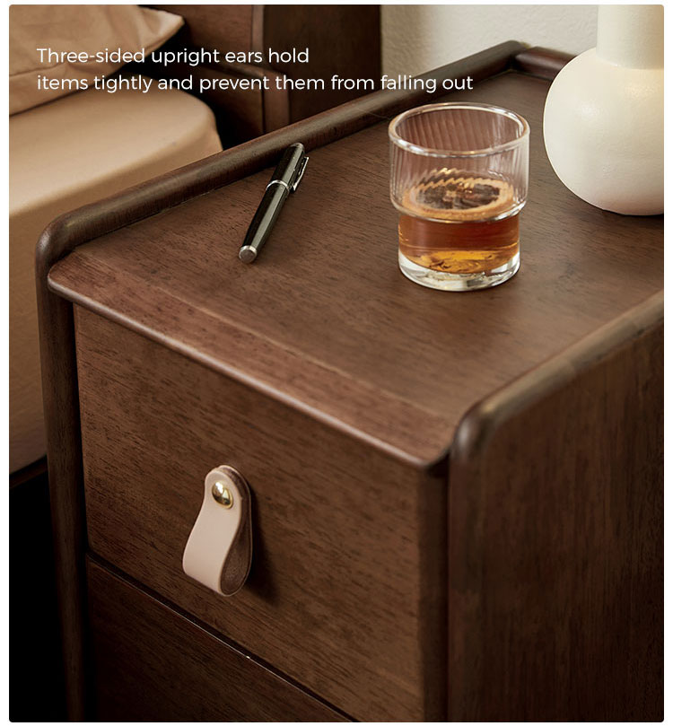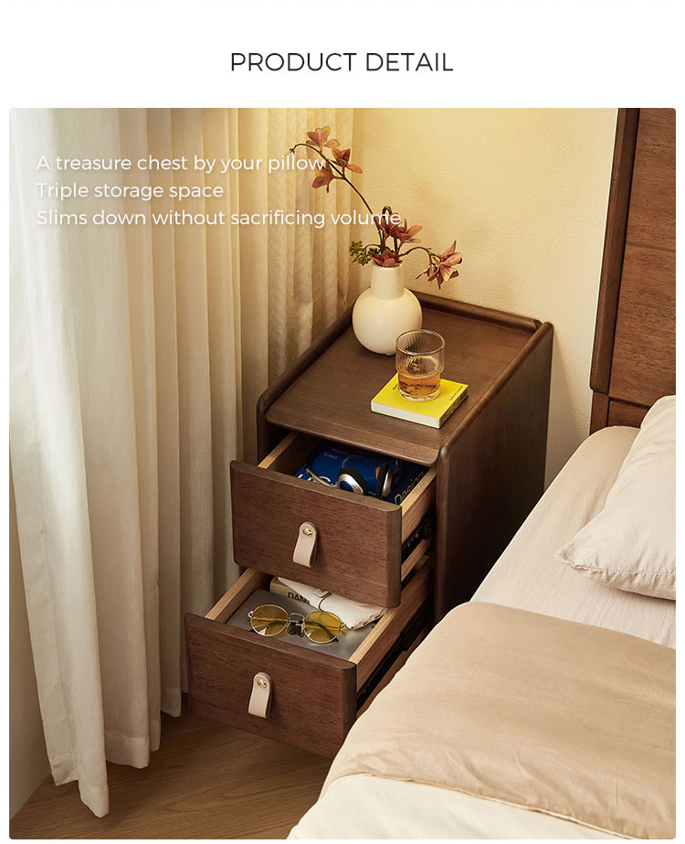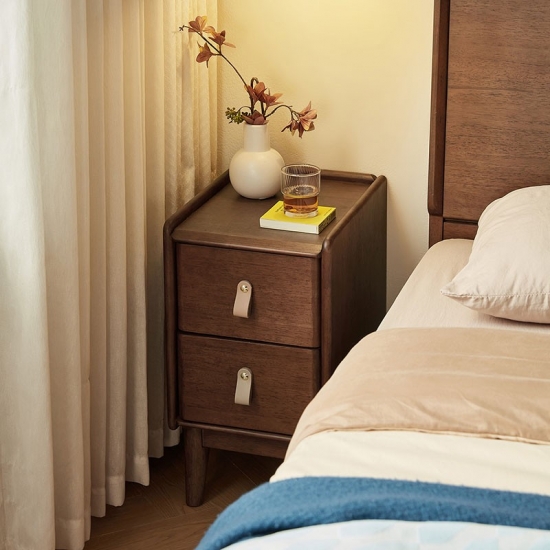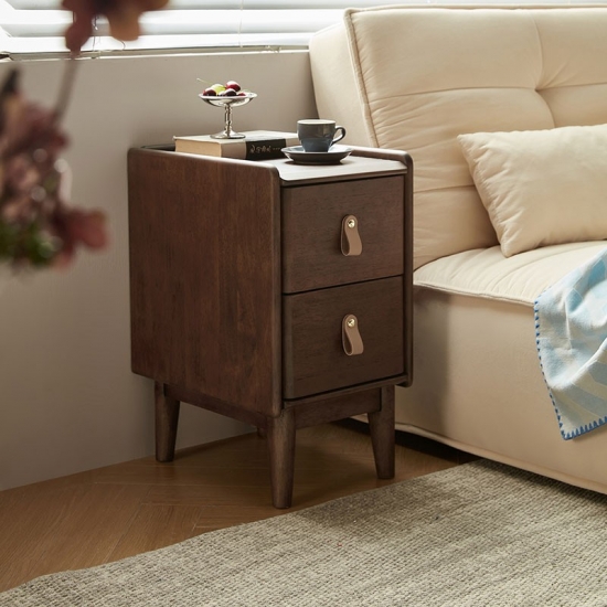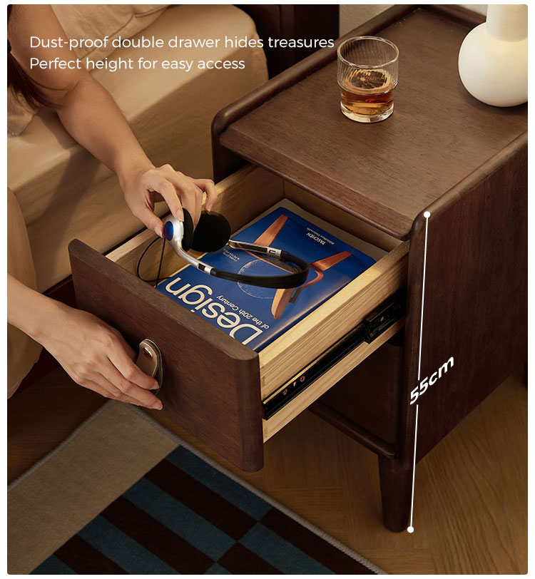 โต๊ะข้างเตียงดีไซน์หรูหราจาก LINSY เคลือบสีวอลนัทเข้มข้น ผสมผสานสไตล์และประโยชน์ใช้สอยได้อย่างลงตัว ขนาดกะทัดรัดลงตัว วางไว้ข้างเตียงได้อย่างลงตัว เก็บของจำเป็นไว้ใกล้มือได้สะดวก