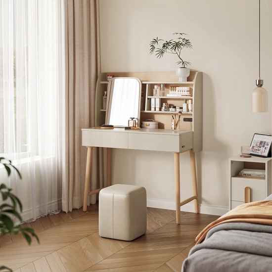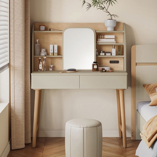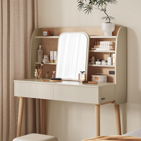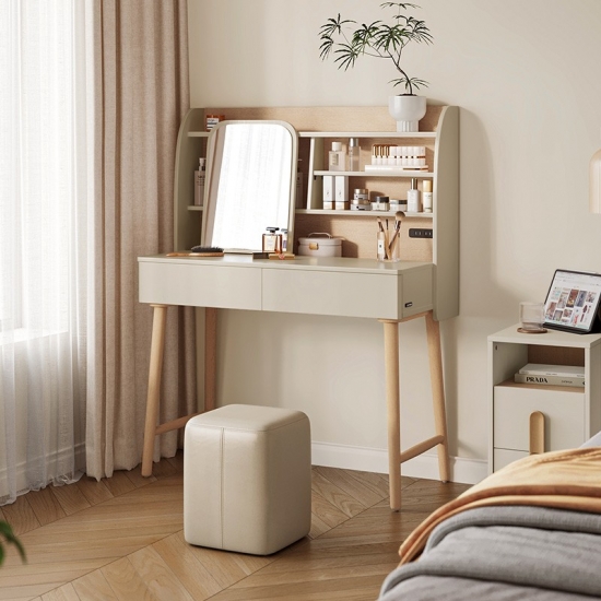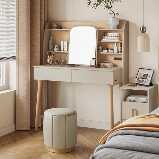 พื้นผิวโต๊ะเครื่องแป้งที่ใช้งานได้จริง: ด้านบนที่ทนทานให้พื้นที่เฉพาะที่กว้างขวางสำหรับกิจวัตรด้านความงามประจำวัน ผลิตภัณฑ์ดูแลผิว หรือเครื่องประดับอันล้ำค่าของคุณ
