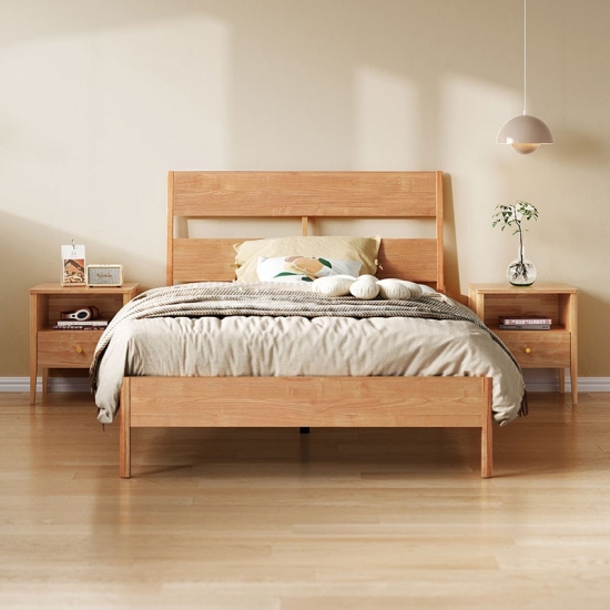 7LINSY เฟอร์นิเจอร์ห้องนอนสไตล์โมเดิร์นเตียงคิงไซส์นุ่มและไม้ OU1A-A