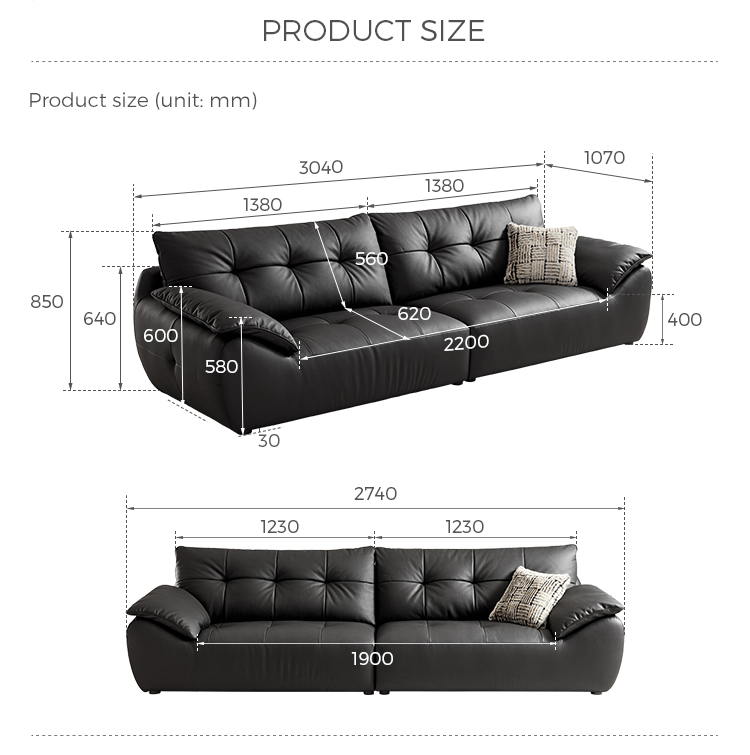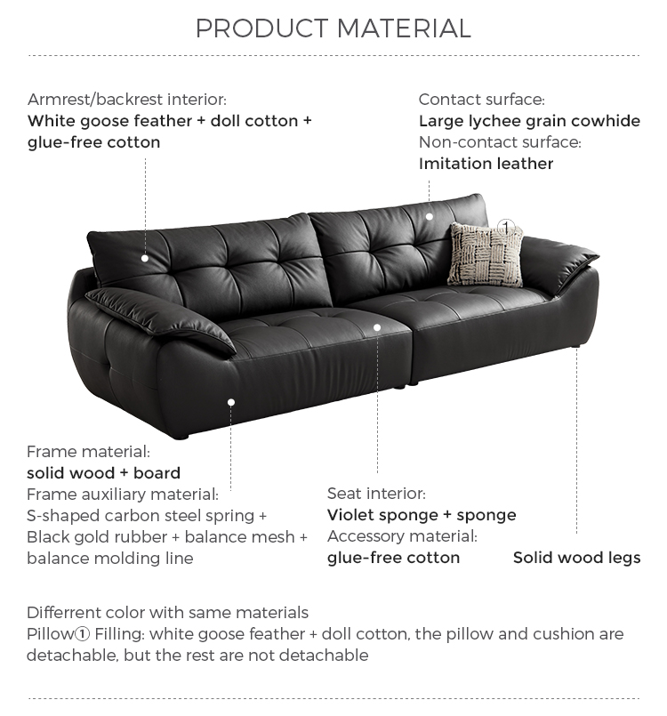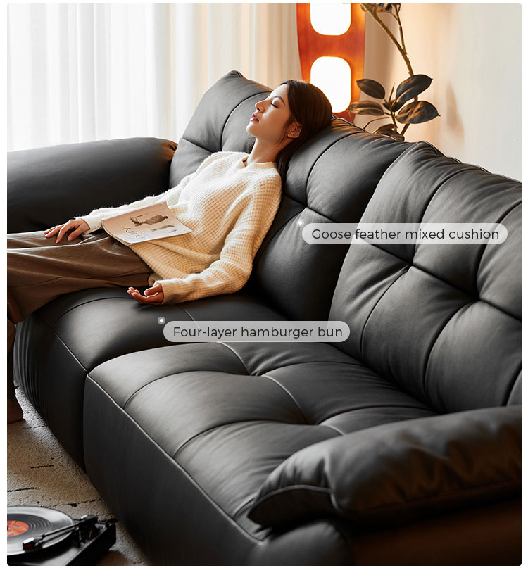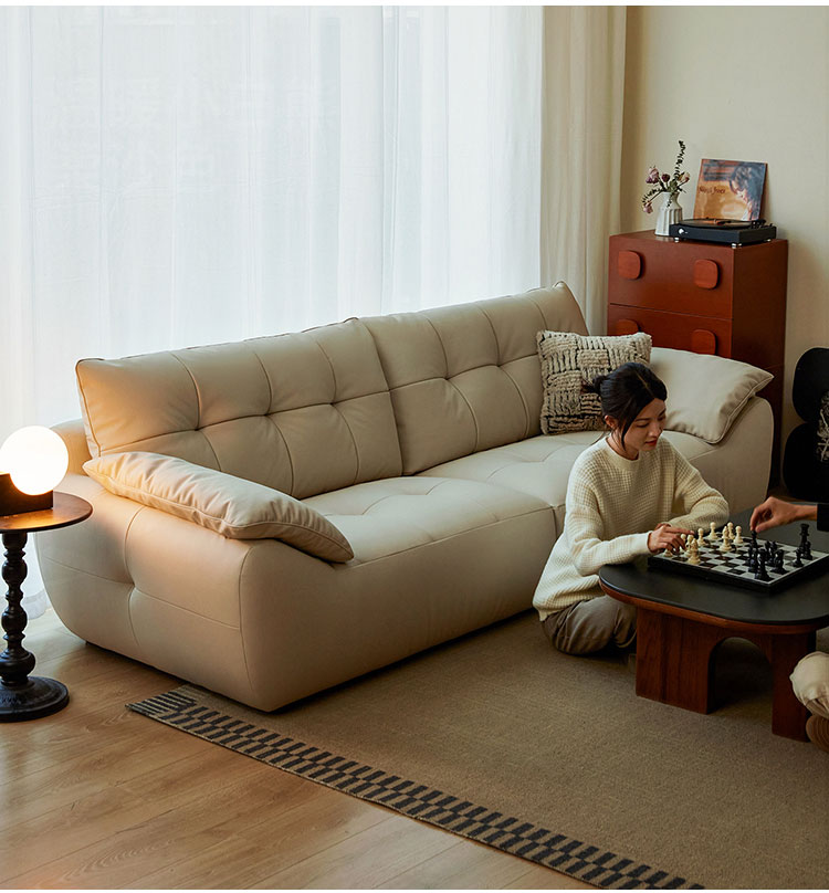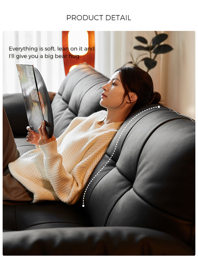 พื้นผิวโซฟามีริ้วรอยตามธรรมชาติ เช่น คลื่นแสงและเงา โดยมีความสมดุลระหว่างแสงและความมืด ขนห่านสีเทาและสำลีตุ๊กตาเต็มตัวทำให้ร่างกายจมดิ่งลงสู่ความนุ่มนวลราวกับอยู่ในเมฆ