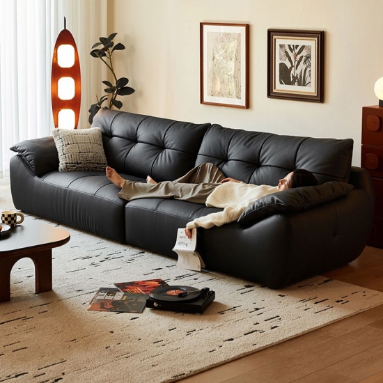 โซฟาหนังแท้สีดำ LINSY Modern รุ่น PS662-A