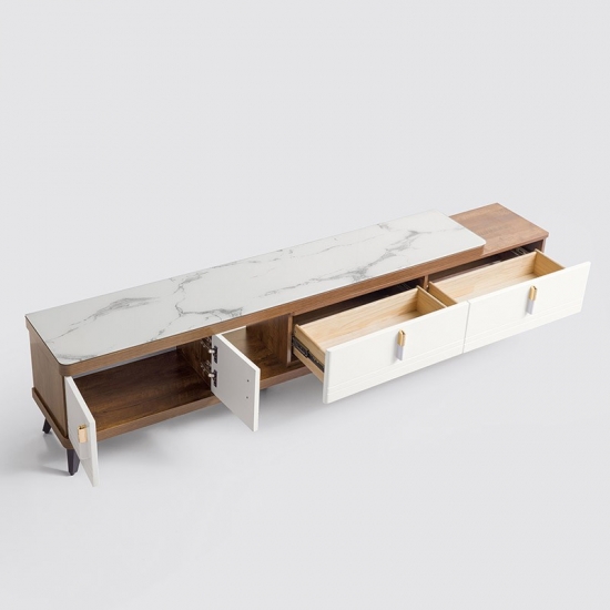 7LINSY ชั้นวางทีวีทรงสี่เหลี่ยมผืนผ้าทันสมัยพร้อมลิ้นชัก LS186M1-A