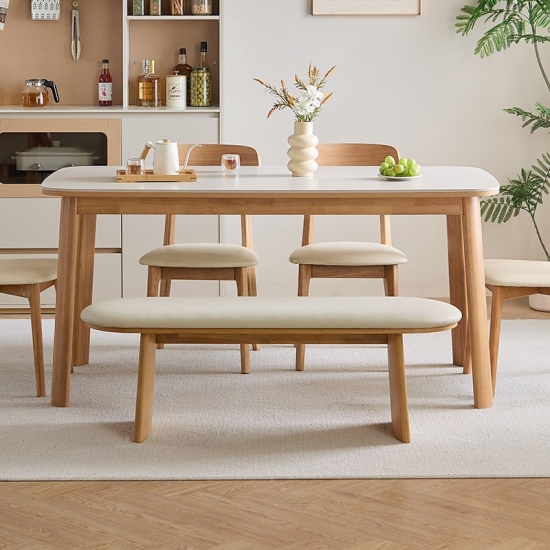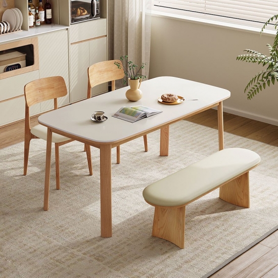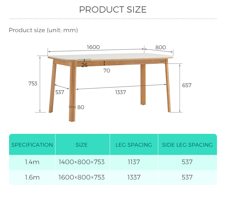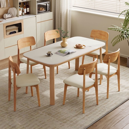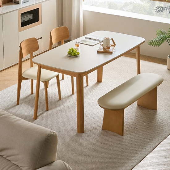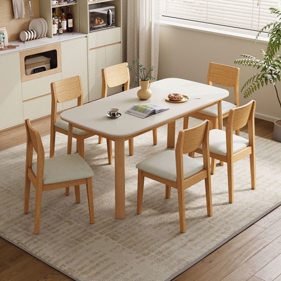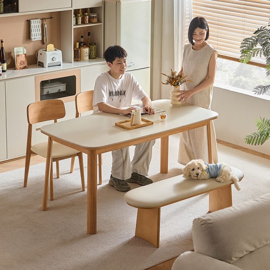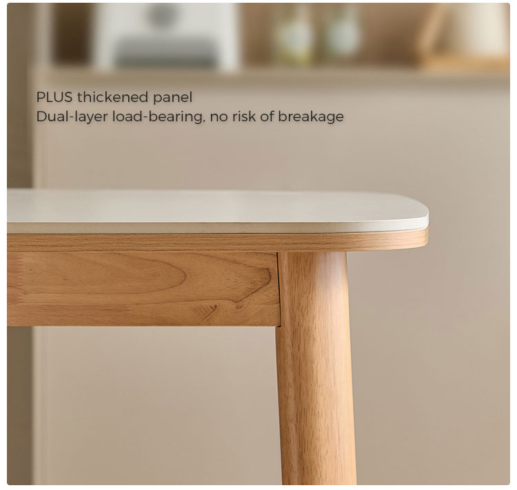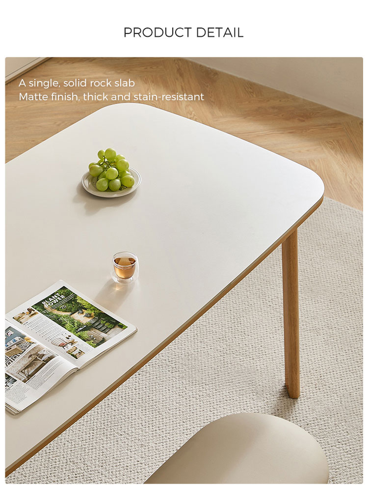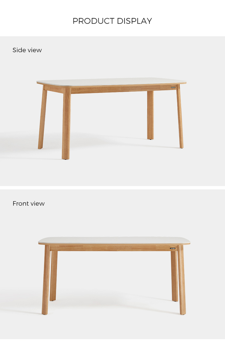 พื้นผิวสี่เหลี่ยมผืนผ้าที่กว้างขวาง: ท็อปโต๊ะทรงสี่เหลี่ยมผืนผ้าที่กว้างขวางให้พื้นที่กว้างขวางสำหรับรับประทานอาหารกับครอบครัว ต้อนรับแขก หรือแม้กระทั่งใช้เป็นพื้นที่ทำงาน รูปทรงของโต๊ะช่วยให้การสนทนาและการเชื่อมต่อเป็นไปอย่างเป็นธรรมชาติ