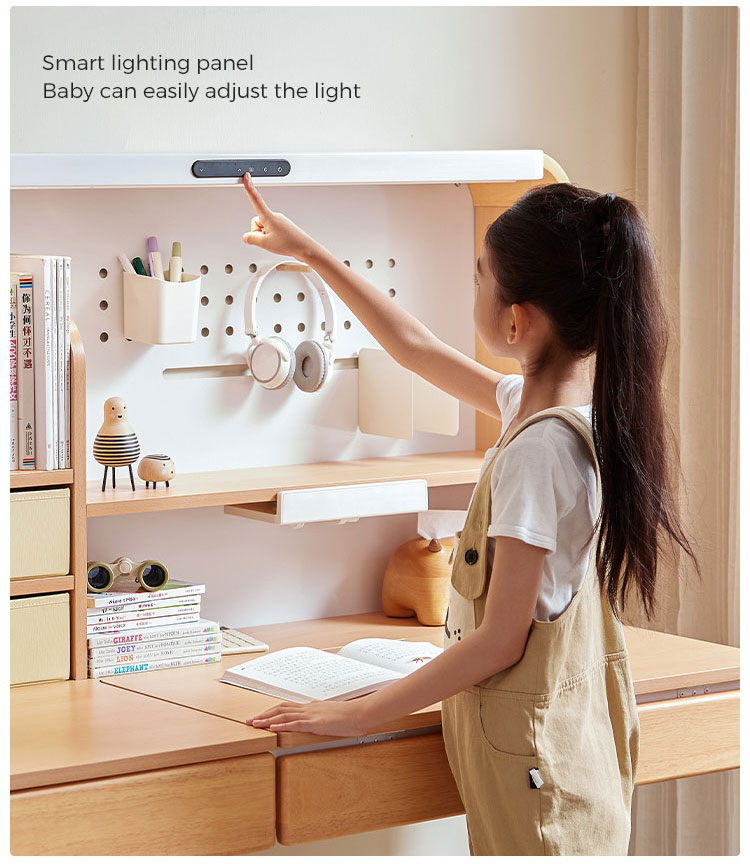7LINSY โต๊ะทำงานเด็กโครงไม้เนื้อแข็งสไตล์โมเดิร์นพร้อมช่องเก็บของ รุ่น LH324V1-A