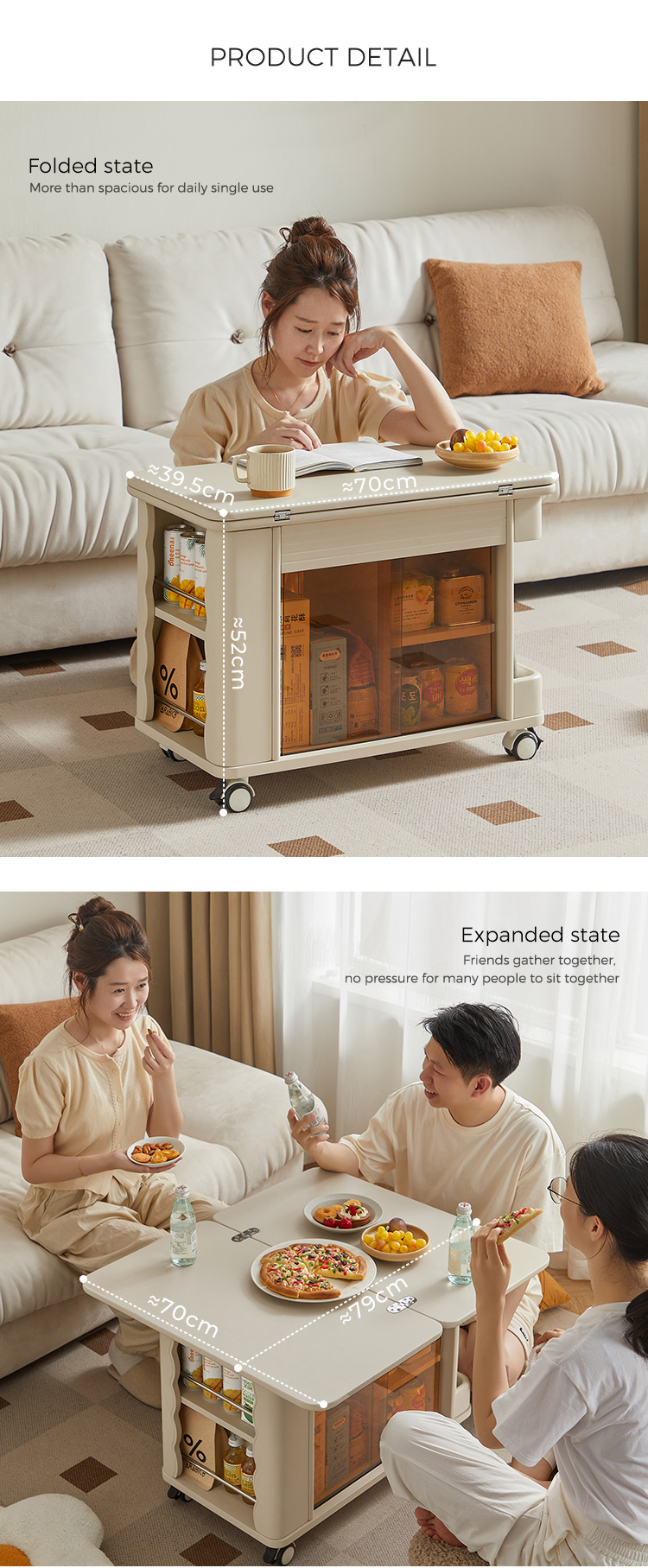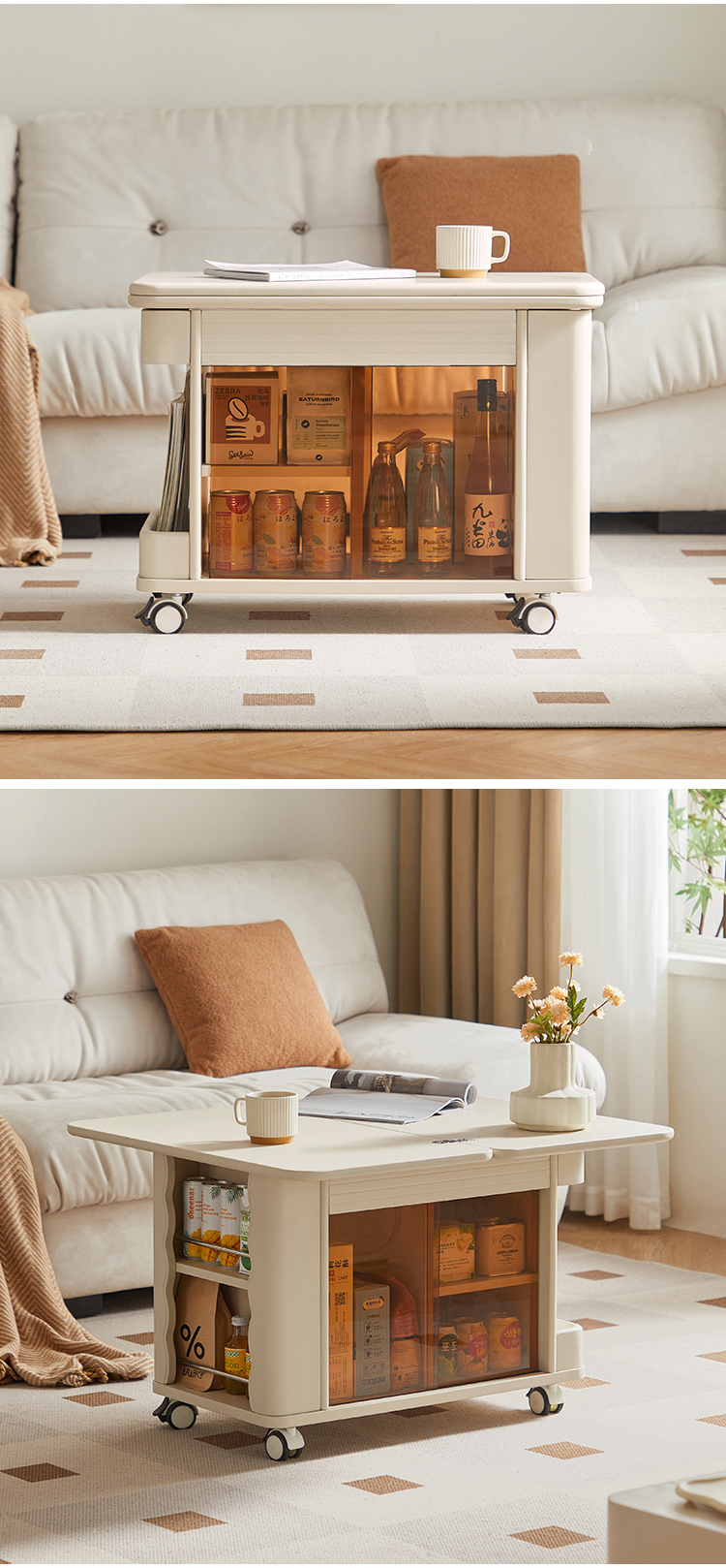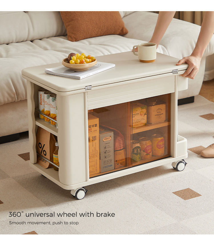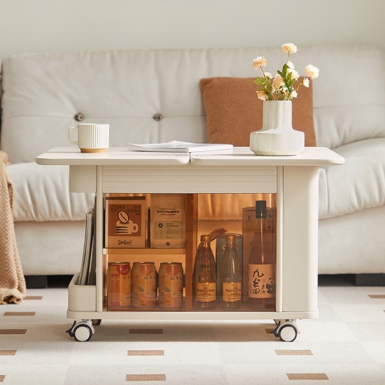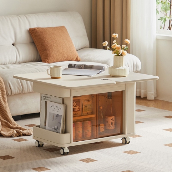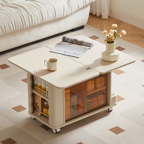 7Linsy Modern Style Mowsable Table โต๊ะกาแฟสีเบจพร้อมล้อ LH202J1-A