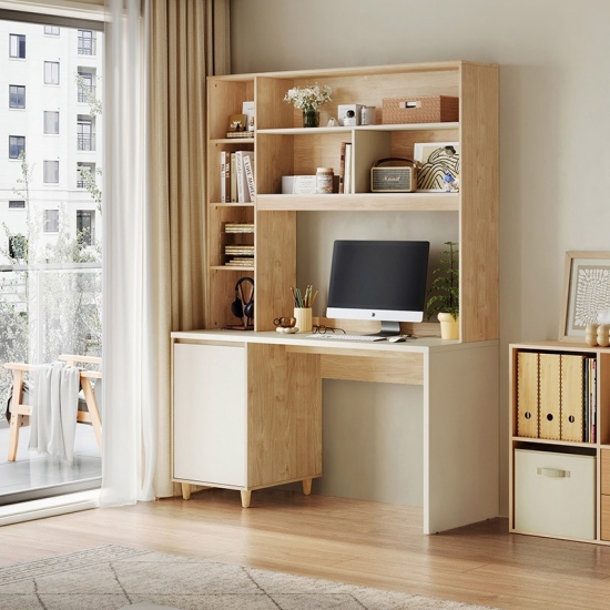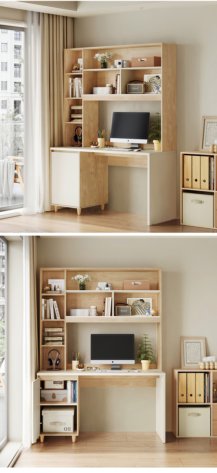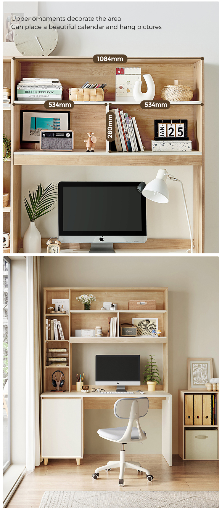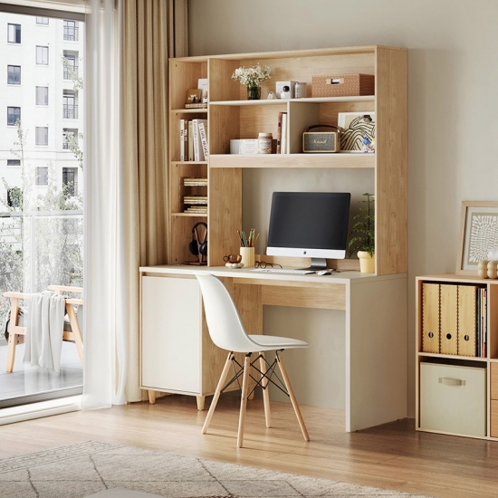 LINSY โต๊ะทำงานสีไม้สไตล์โมเดิร์นสูง 1.2 ม. พร้อมชั้นเก็บของ JV7V-A