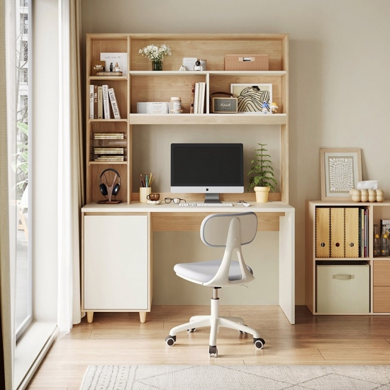 LINSY โต๊ะทำงานสีไม้ สไตล์โมเดิร์น สูง 1.2 ม. พร้อมชั้นเก็บของ JV7V-A