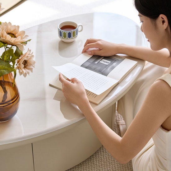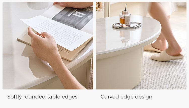 7LINSY โต๊ะกาแฟเตี้ยทรงโค้งสีขาวสไตล์โมเดิร์น YU2L-A