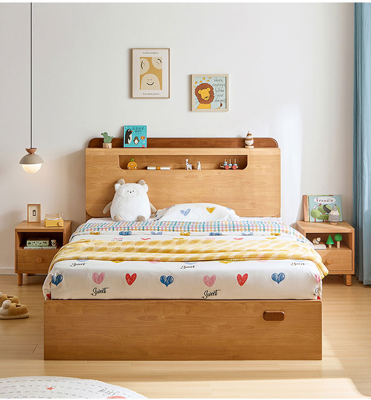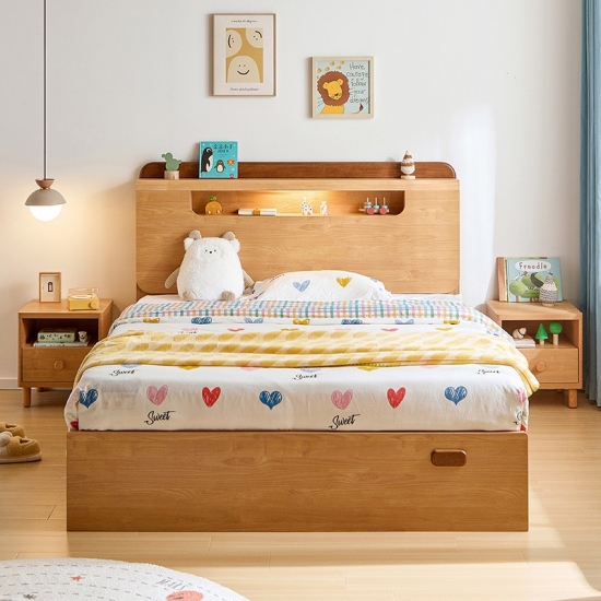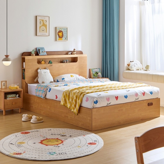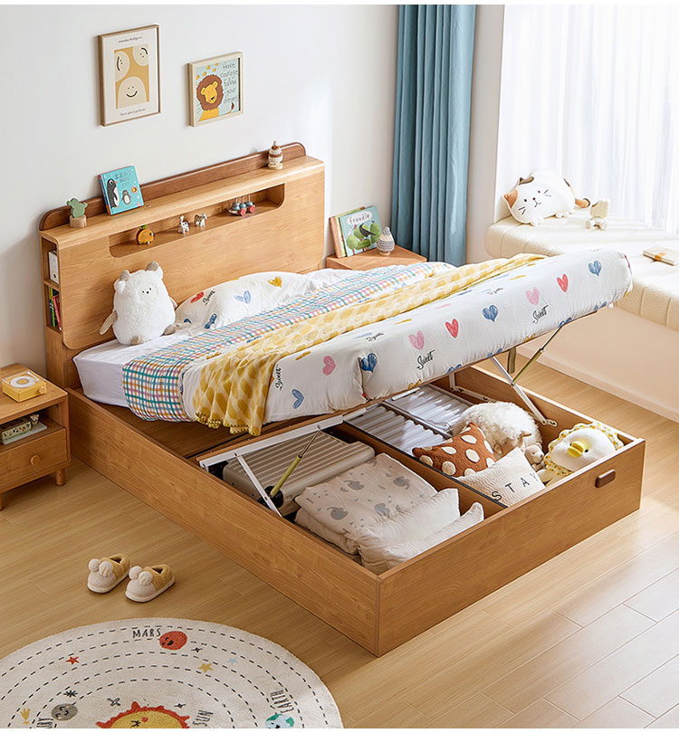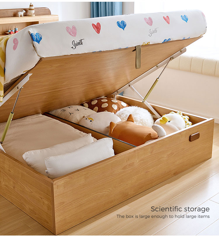 ✔ การออกแบบประหยัดพื้นที่: กลไกไฮดรอลิกยกขึ้นเผยให้เห็นพื้นที่จัดเก็บขนาดใหญ่ใต้เตียงสำหรับของเล่น หนังสือ และสิ่งของตามฤดูกาล