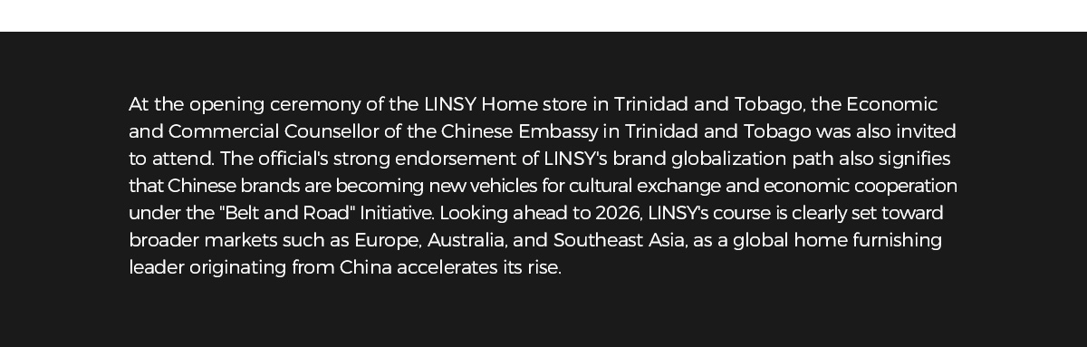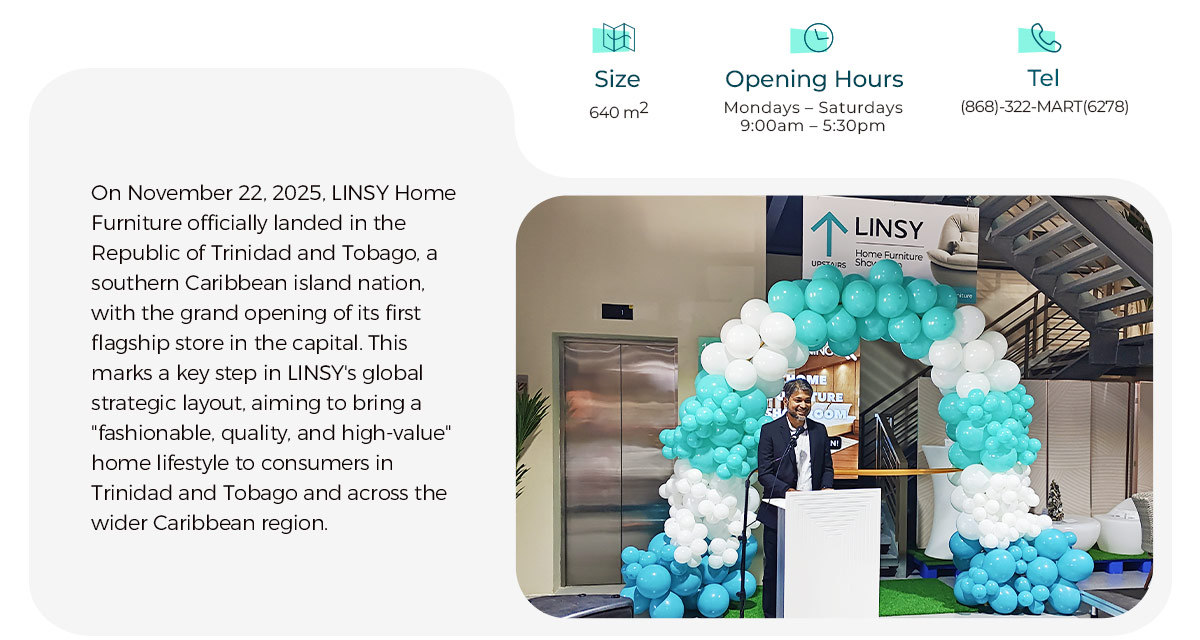 ประเทศตรินิแดดและโตเบโก ด้วยเศรษฐกิจที่มั่นคงและวัฒนธรรมที่หลากหลาย จึงเป็นตัวเลือกอันดับต้นๆ สำหรับ LINSY เปิดร้าน ทำให้ LINSY สามารถย้ายระบบนิเวศทั้งหมดได้ — ครอบคลุมถึงดีเอ็นเอของแบรนด์ที่ประกอบด้วย "แฟชั่น ความหลากหลาย และความสะดวกสบาย" การดำเนินงานค้าปลีกแบบครบวงจร และห่วงโซ่อุปทานดิจิทัล — ต่างประเทศ