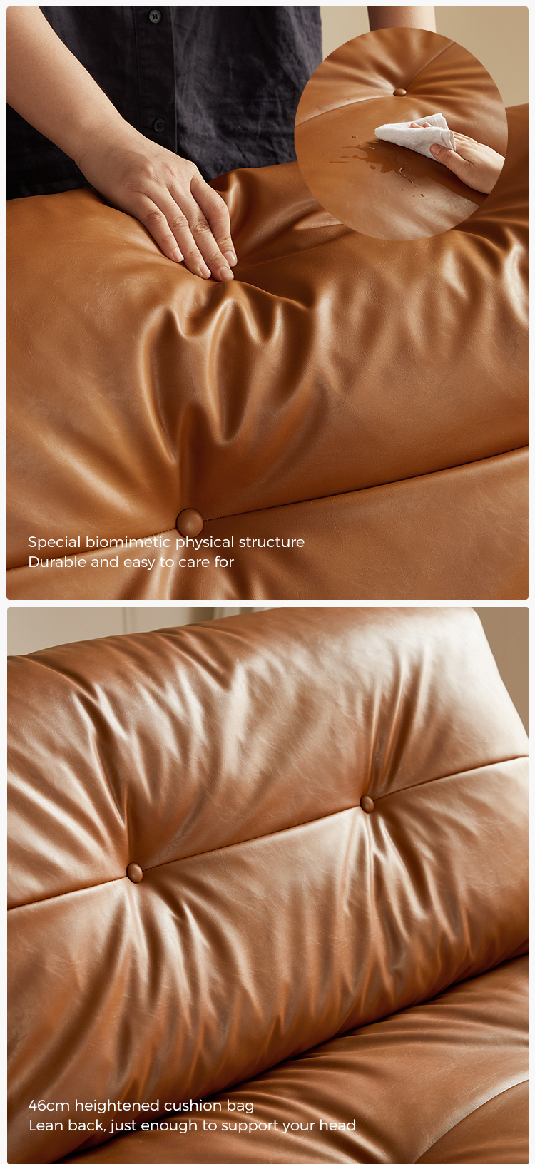 -หนังอะนิลีนที่ระบายอากาศได้ตามธรรมชาติซึ่งสร้างคราบที่เป็นเอกลักษณ์เมื่อเวลาผ่านไป