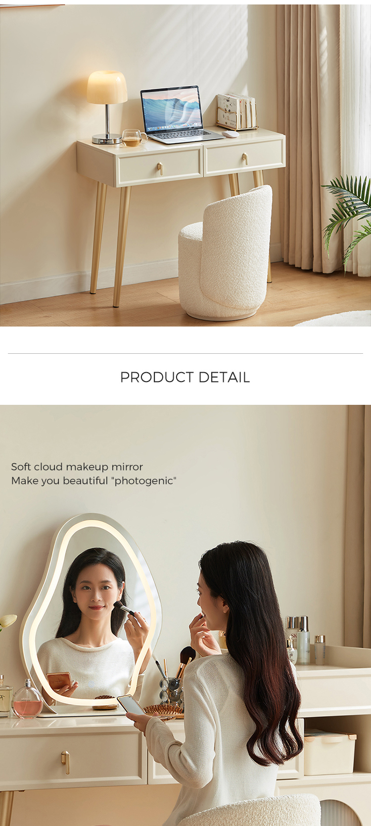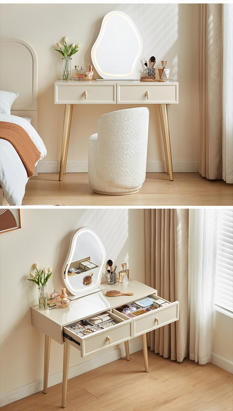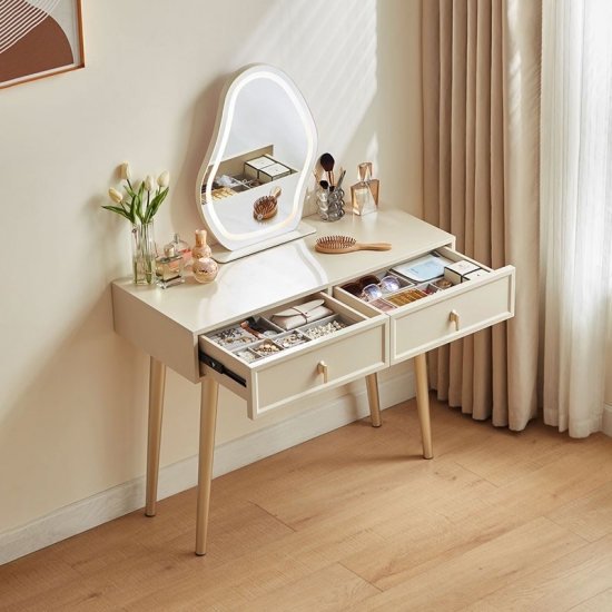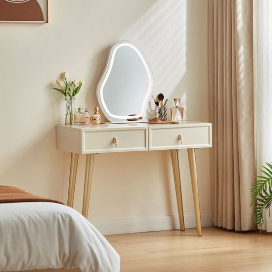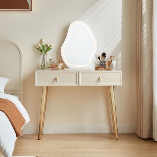 7โต๊ะเครื่องแป้ง LINSY ดีไซน์เรียบง่าย สีขาว พร้อมกระจกลายเมฆ TO3C-A1