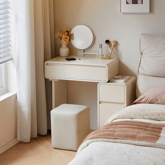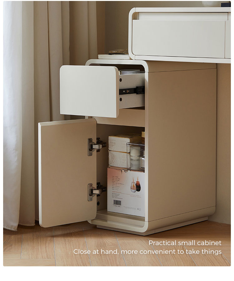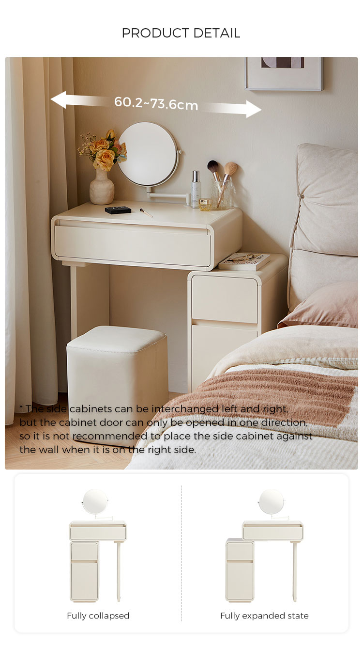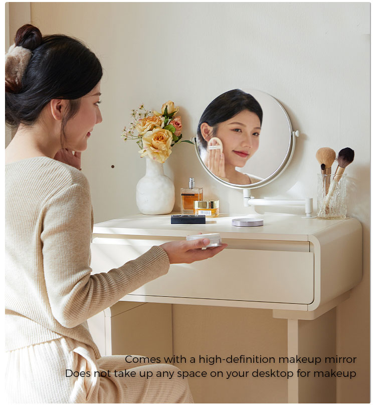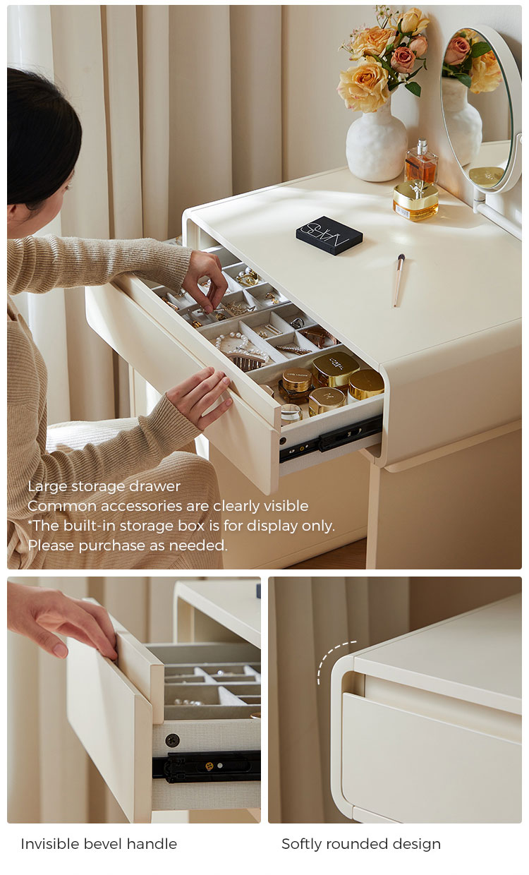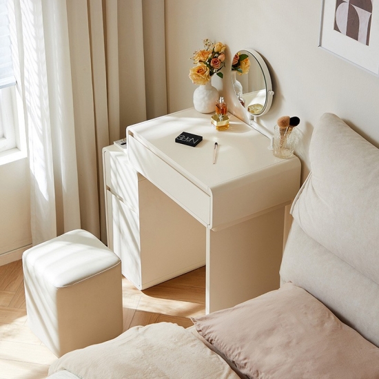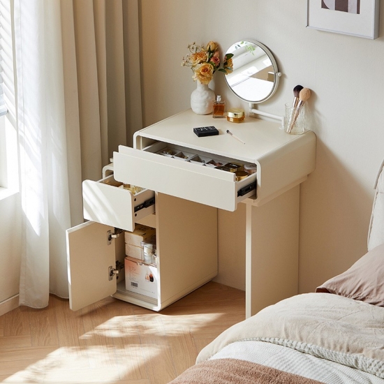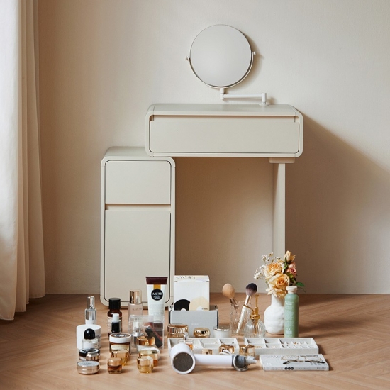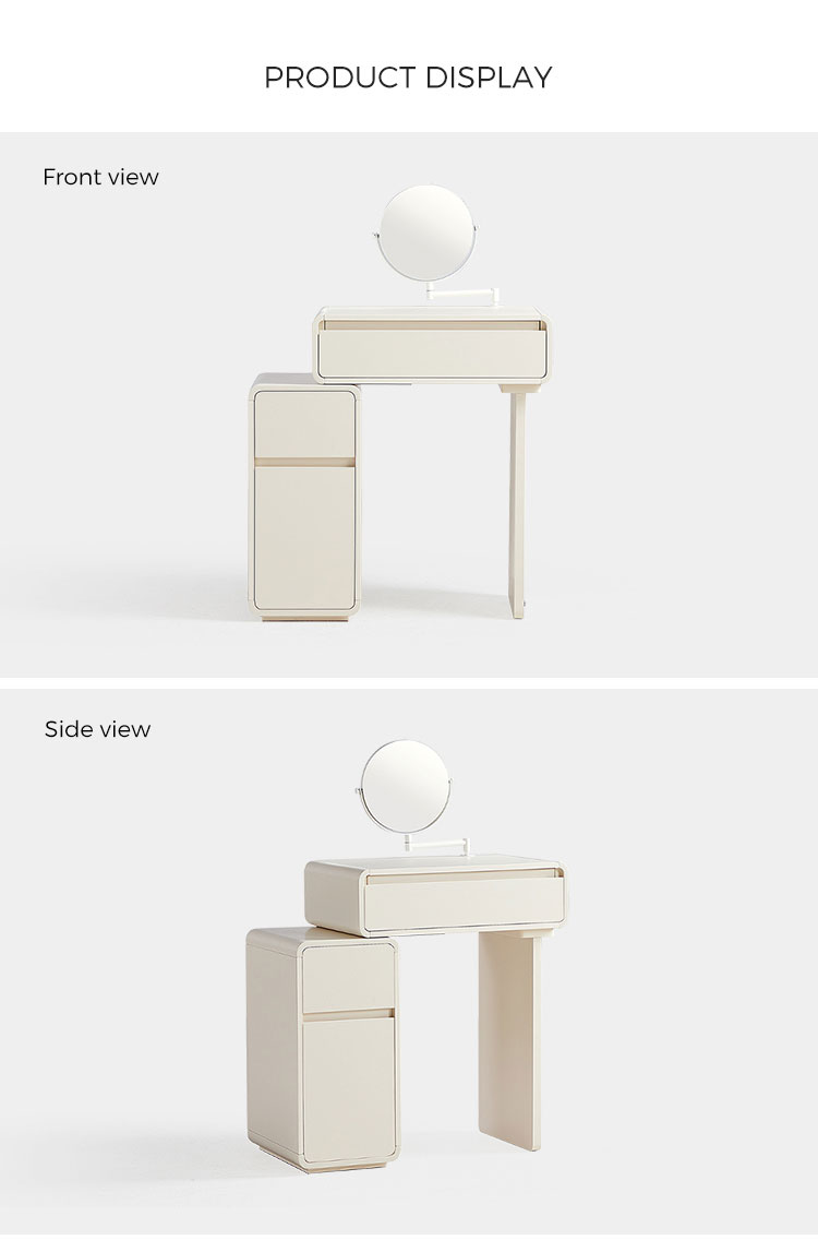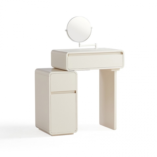 โต๊ะเครื่องแป้งสีขาวสุดหรูนี้ออกแบบมาเพื่อไลฟ์สไตล์ที่ทันสมัย ผสานสไตล์และฟังก์ชันการใช้งานอย่างลงตัว ดีไซน์ประหยัดพื้นที่ช่วยเพิ่มพื้นที่จัดเก็บได้อย่างมีประสิทธิภาพ พร้อมคงความสวยงามเรียบง่ายแบบมินิมอล มาพร้อมช่องเก็บของ ลิ้นชัก และช่องเก็บของมากมาย ช่วยให้จัดเก็บเครื่องสำอางของคุณได้อย่างเป็นระเบียบ เหมาะสำหรับพื้นที่ขนาดเล็ก โต๊ะเครื่องแป้งนี้จึงใช้งานได้จริงแต่ยังคงความทันสมัย เหมาะสำหรับใช้ในชีวิตประจำวัน