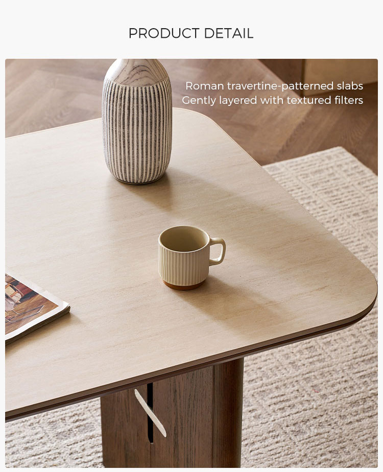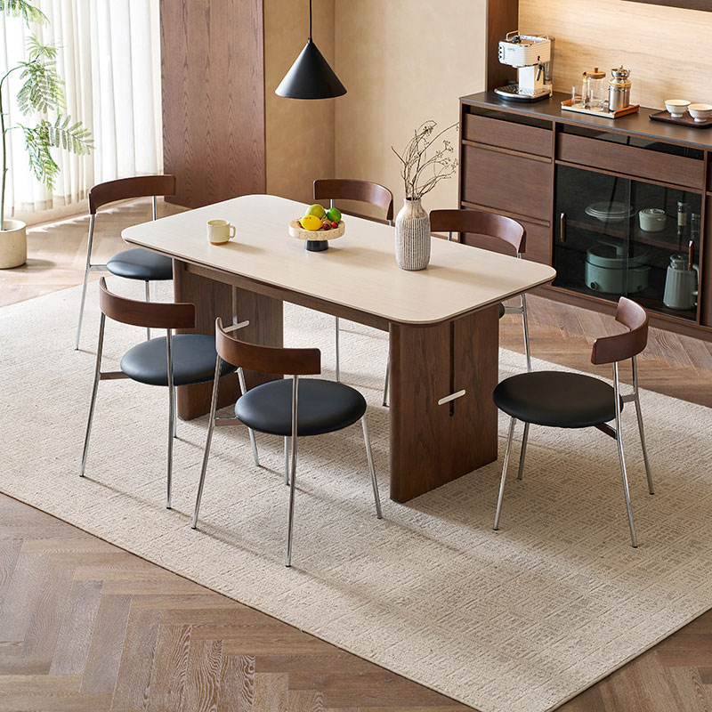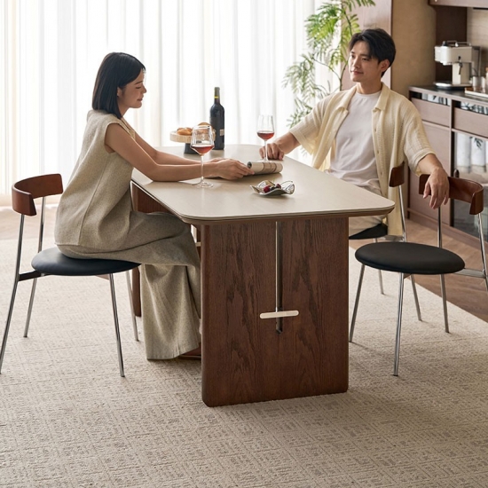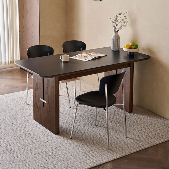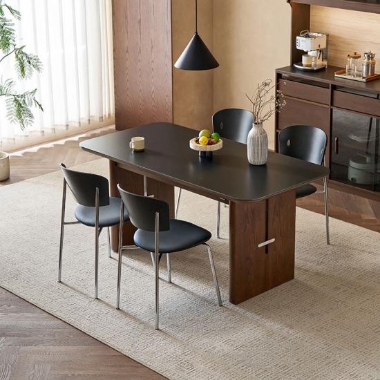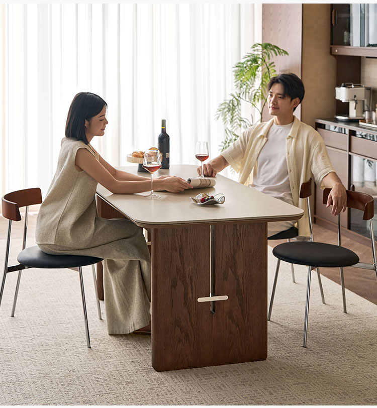 7โต๊ะรับประทานอาหารท็อปไม้ Sintered Board ทรงสี่เหลี่ยมผืนผ้า สไตล์วินเทจ LINSY รุ่น YZ2R-A