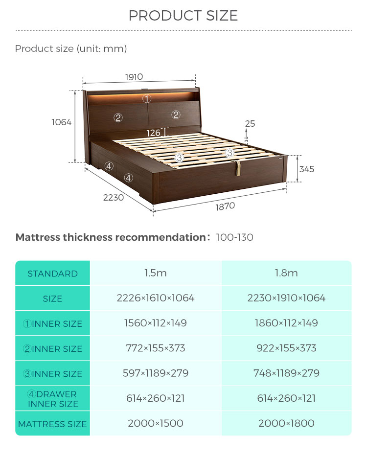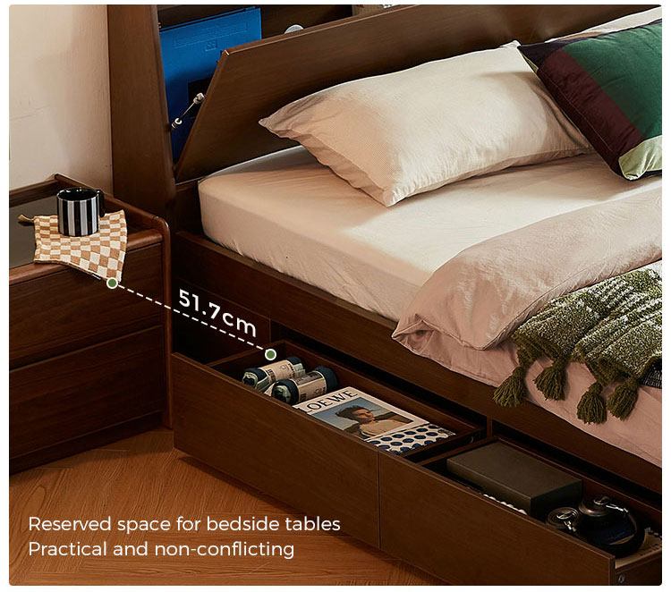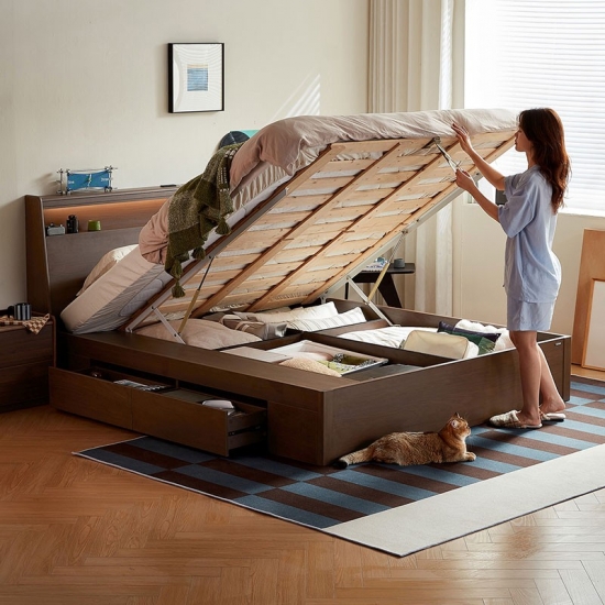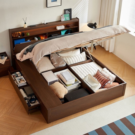 จุดเด่นอยู่ที่ฐานเก็บของแบบยกสูงที่ออกแบบมาอย่างลงตัว พร้อมกลไกยกไฮดรอลิกที่ทำงานได้อย่างราบรื่น ระบบที่เป็นนวัตกรรมนี้เปลี่ยนแท่นวางที่นอนทั้งหมดให้กลายเป็นพื้นที่เก็บของขนาดใหญ่ที่เข้าถึงได้ง่าย เหมาะอย่างยิ่งสำหรับการจัดเก็บสิ่งของขนาดใหญ่ สิ่งของตามฤดูกาล หรือสิ่งของที่ใช้ไม่บ่อย เช่น ชุดเครื่องนอนสำรอง ผ้าห่มฤดูหนาว หมอน กระเป๋าเดินทาง เสื้อผ้าตามฤดูกาล หรือกล่องเก็บความทรงจำ ซึ่งจะช่วยประหยัดพื้นที่ใช้สอยและทำให้ห้องนอนดูเป็นระเบียบเรียบร้อย