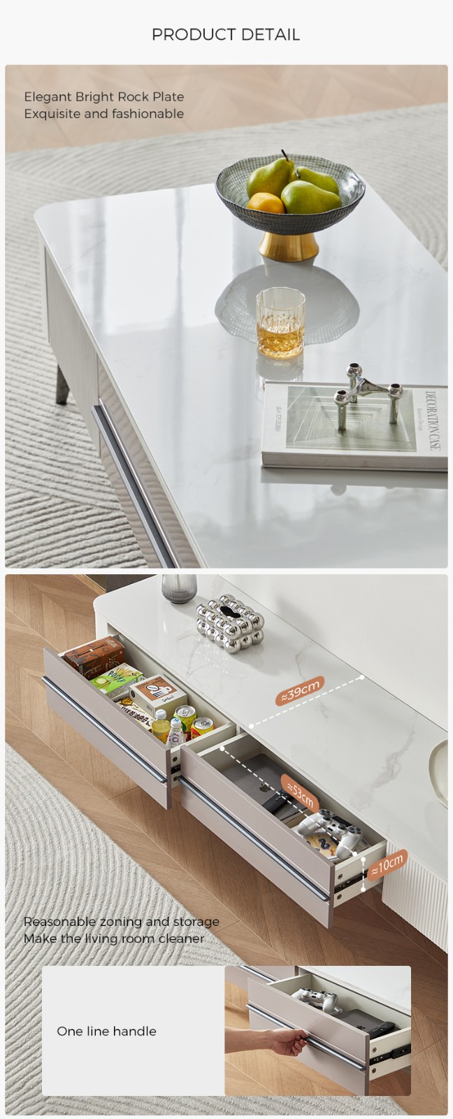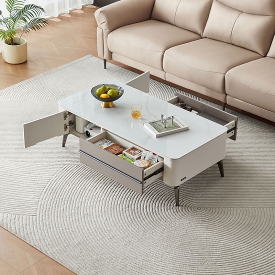 *ออกแบบอย่างพิถีพิถันในรายละเอียด โต๊ะกาแฟนี้ผสมผสานเส้นสายที่ทันสมัย สุนทรียภาพอันน่าหลงใหล และคุณสมบัติที่ใช้งานได้จริง ด้วยพื้นที่พื้นผิวที่กว้างขวางและตัวเลือกการจัดเก็บที่สะดวกสบาย จึงตอบสนองทั้งความต้องการด้านการใช้งานและความต้องการด้านสุนทรียศาสตร์ของคุณ