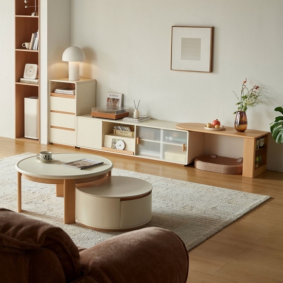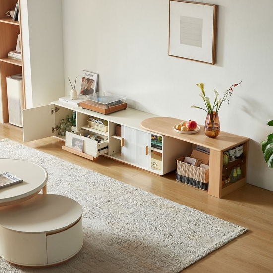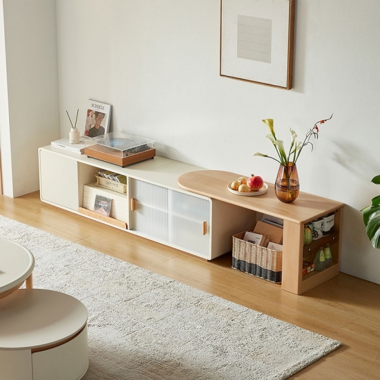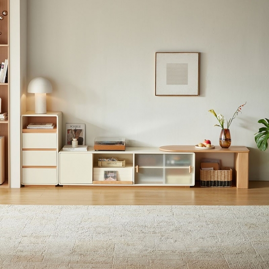 อัปเกรดห้องนั่งเล่นของคุณด้วยตู้วางทีวีสีขาวแบบขยายได้ของเรา ซึ่งผสมผสานสไตล์เรียบง่ายเข้ากับความคล่องตัวอย่างลงตัว ดีไซน์เรียบง่ายทันสมัยเข้ากับการตกแต่งทุกสไตล์ ขณะที่ความยาวที่ปรับได้ช่วยให้พอดีกับพื้นที่และขนาดหน้าจอของคุณ รอรับคำถามของคุณอยู่