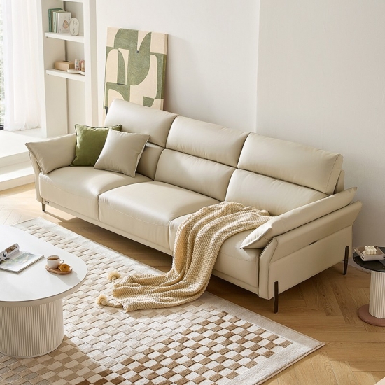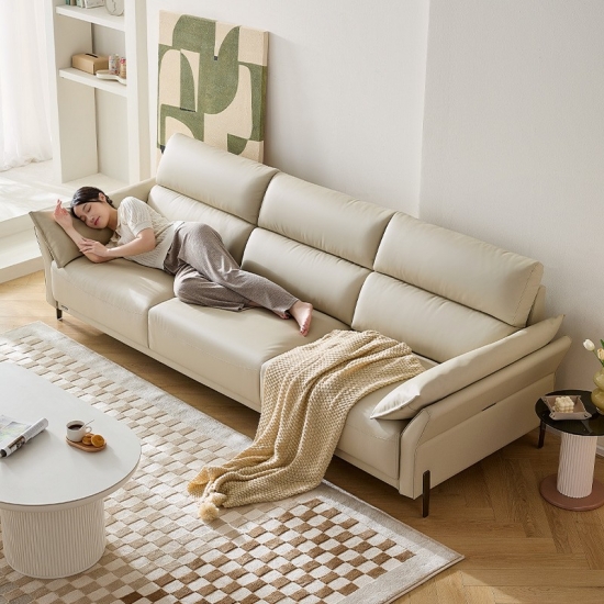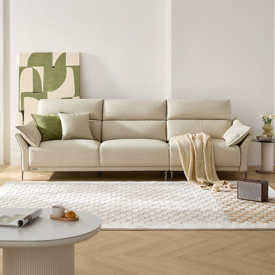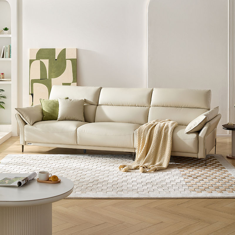 โซฟาหนังสามที่นั่ง LModern สีเบจห้องนั่งเล่นโรงแรมใช้ BS258-A |