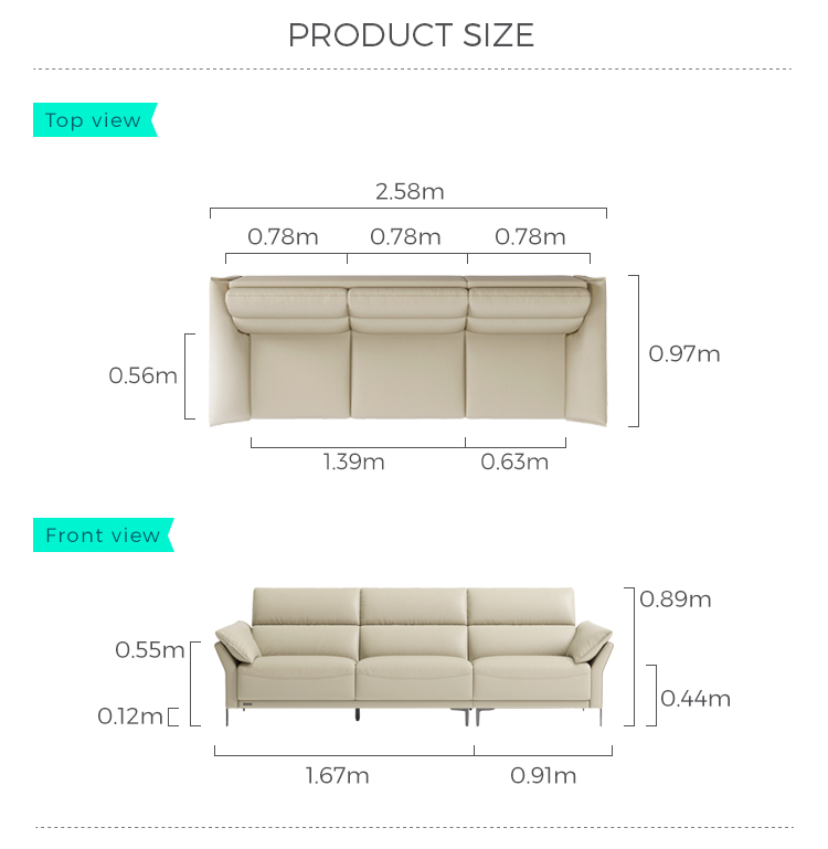 7โซฟาหนังสามที่นั่งสีเบจทันสมัยห้องนั่งเล่นโรงแรมใช้ BS258-A