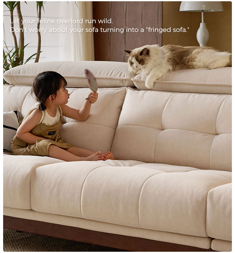 โซฟา LINSY ออกแบบมาสำหรับบ้านสมัยใหม่ โดดเด่นด้วยรูปทรงเพรียวบางและโทนสีเทาที่เป็นกลาง เข้ากับทุกสไตล์การตกแต่งได้อย่างลงตัว แต่ความงามที่แท้จริงซ่อนอยู่ภายใต้พื้นผิว หุ้มด้วยผ้าคุณภาพสูงที่ทนทานต่อรอยขีดข่วน จึงทนทานต่อรอยเท้าแมวและการใช้งานในชีวิตประจำวันได้อย่างสบาย เคล็ดลับคืออะไร? วัสดุที่ออกแบบมาเป็นพิเศษนี้ทอด้วยเส้นใยความหนาแน่นสูงเพื่อทนต่อรอยขีดข่วน รอยดึง และคราบสกปรก และยังมีคุณสมบัติกันน้ำเพื่อการทำความสะอาดที่ง่ายดาย