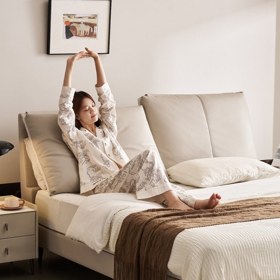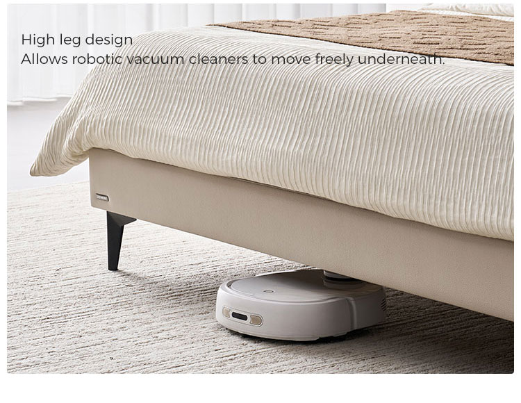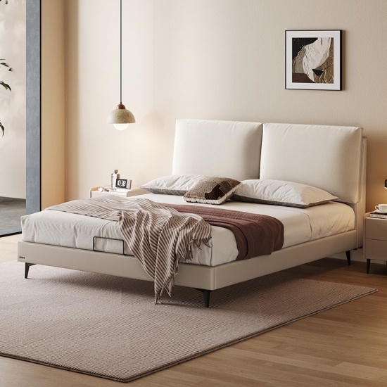 7เตียงนอนไม้หุ้มหนังสีเบจ ดีไซน์โมเดิร์นหรูหรา รุ่น PC589-A