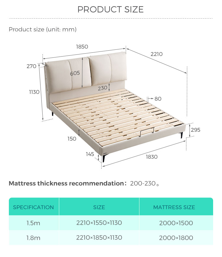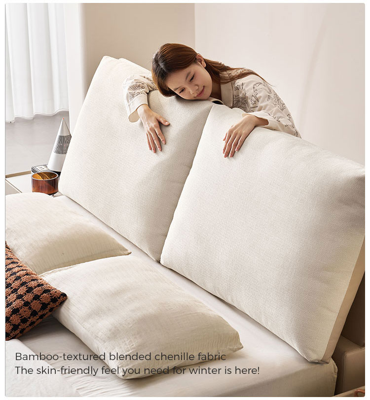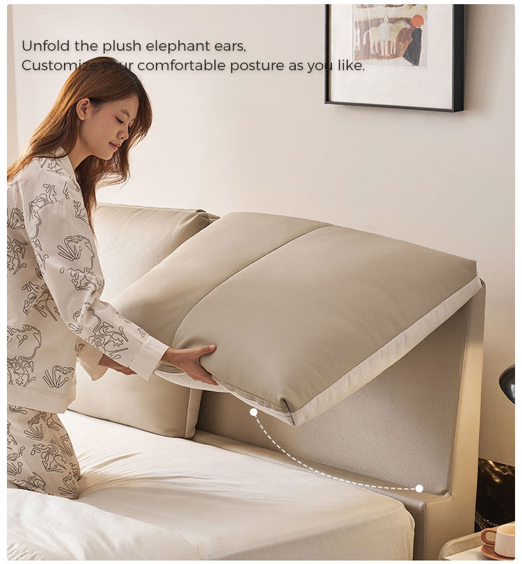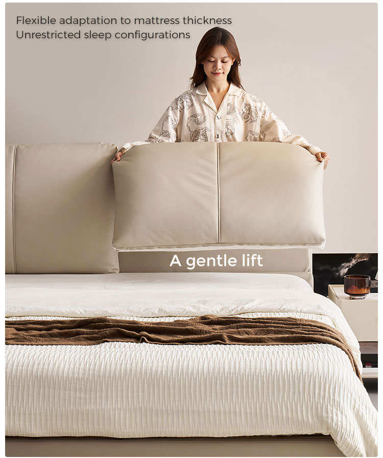 ยกระดับห้องนอนของคุณด้วย LINSY เตียงหนังสีเบจอ่อนนุ่ม ที่ซึ่งความหรูหรามาบรรจบกับการออกแบบร่วมสมัย หัวเตียงนี้ผลิตจากหนังสีเบจคุณภาพเยี่ยม เนื้อนุ่ม สัมผัสเรียบเนียนดุจกำมะหยี่ มอบความอบอุ่นและความหรูหราให้กับห้องนอนสไตล์โมเดิร์นได้ทันที