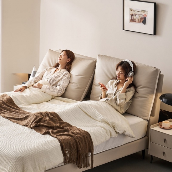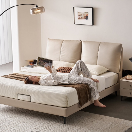 เตียงนอนไม้หุ้มหนังสีเบจ ดีไซน์โมเดิร์นหรูหรา รุ่น PC589-A |