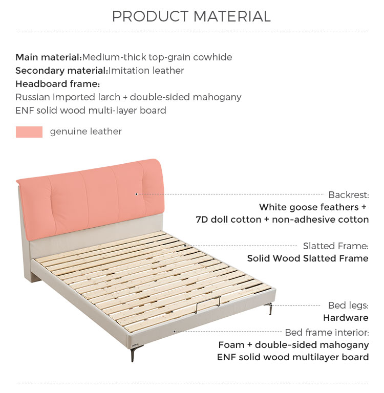 เตียงนอนนี้ได้รับการรังสรรค์ขึ้นสำหรับผู้ที่ชื่นชอบคุณภาพที่คงทนและการออกแบบร่วมสมัย โดยผสานความอบอุ่นจากธรรมชาติของไม้เนื้อแข็งเข้ากับสัมผัสอันหรูหราของหนังแท้คุณภาพสูงได้อย่างลงตัว เส้นสายที่เรียบง่าย การเย็บที่ประณีต และรูปทรงมินิมอล คือเอกลักษณ์ของชิ้นงานนี้ มันทำหน้าที่เป็นจุดเด่นที่ดูหรูหรา เข้ากันได้ดีกับสไตล์การตกแต่งห้องนอนที่หลากหลาย ไม่ว่าจะเป็นสไตล์โมเดิร์น มินิมอล หรือสไตล์ผสมผสาน