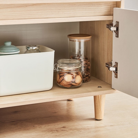 พื้นผิวด้านบนเรียบเป็นฐานที่สมบูรณ์แบบสำหรับภาพถ่ายใส่กรอบหรือโคมไฟที่มีสไตล์ มีการออกแบบที่คล่องตัวด้วยมุมโค้งมนและฐานที่มีขาเรียวทั้งสี่เพื่อให้ดูเก๋ไก๋ในช่วงกลางศตวรรษ