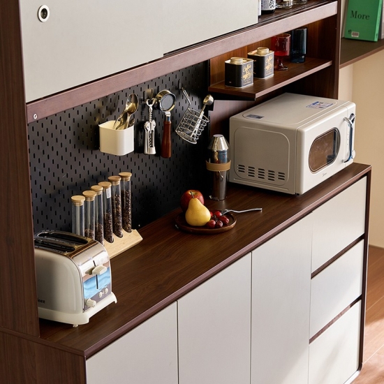 พื้นที่จัดเก็บข้อมูลกว้างขวาง – มีพื้นที่กว้างขวางสำหรับจัดเก็บเครื่องใช้บนโต๊ะอาหาร ผ้าปูโต๊ะ และอื่นๆ ช่วยให้บริเวณรับประทานอาหารของคุณเป็นระเบียบเรียบร้อย