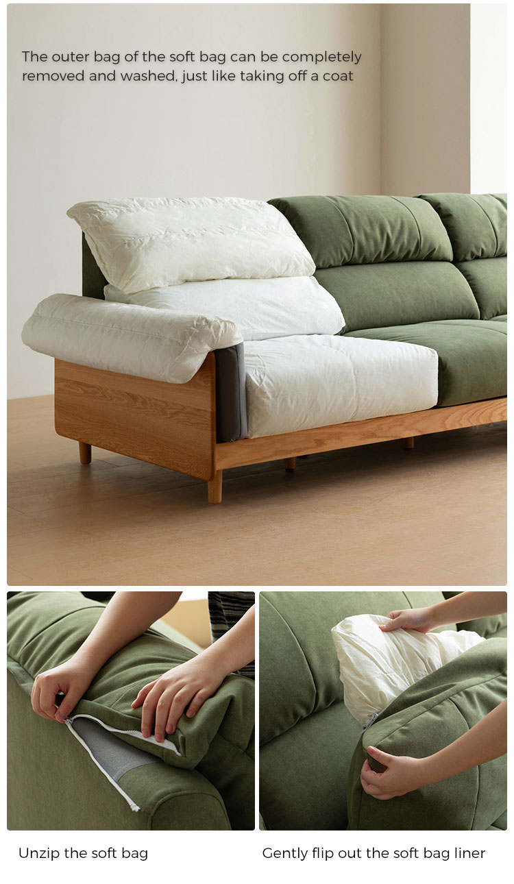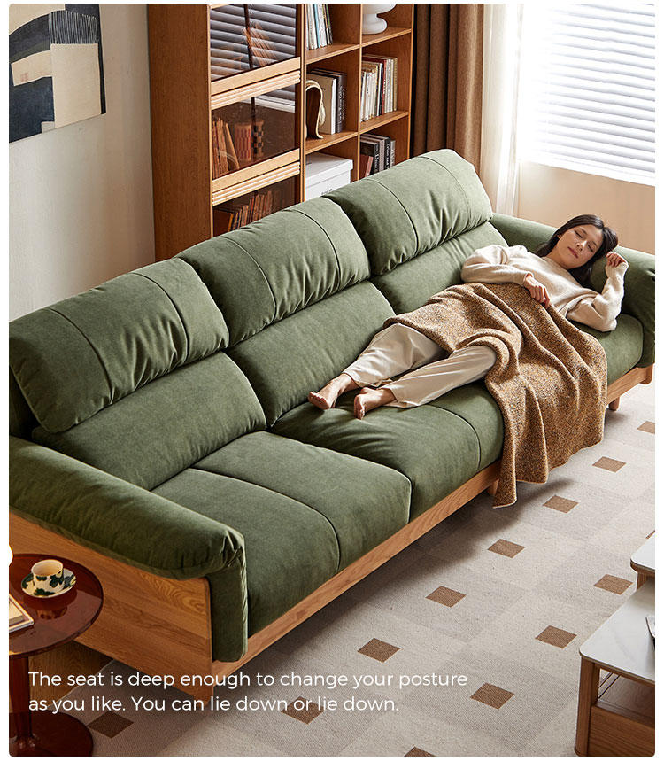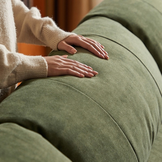 โซฟาตัวนี้ผลิตด้วยมือจากไม้แอชเนื้อแข็งจากแหล่งปลูกที่ยั่งยืน ผสมผสานความอบอุ่นแบบออร์แกนิกเข้ากับดีไซน์ร่วมสมัย หุ้มด้วยผ้าสีเขียวมอสสุดหรู สร้างจุดสนใจอันเงียบสงบสำหรับพื้นที่อยู่อาศัยที่ใส่ใจสิ่งแวดล้อม