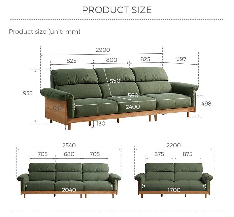 7โซฟาโครงไม้ธรรมชาติสไตล์โมเดิร์นพร้อมผ้าสีเขียวมิ้นต์ TD2K-A
