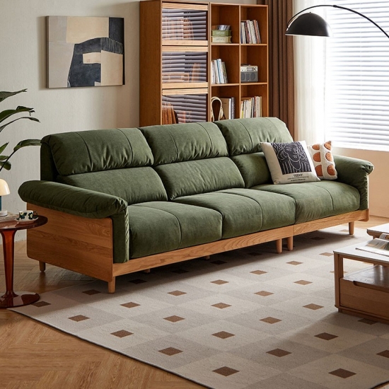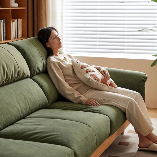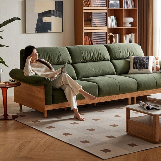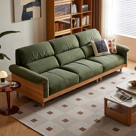 โซฟาโครงไม้ธรรมชาติสไตล์โมเดิร์นพร้อมผ้าสีเขียวมิ้นต์ TD2K-A |