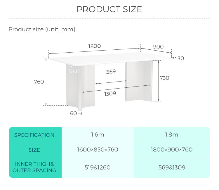 ตัวเลือกขนาดอเนกประสงค์: มีให้เลือกสองความยาว (1.6 เมตร และ 1.8 เมตร) เพื่อให้เหมาะกับพื้นที่และความต้องการที่นั่งของคุณอย่างลงตัว (6-8 คน)