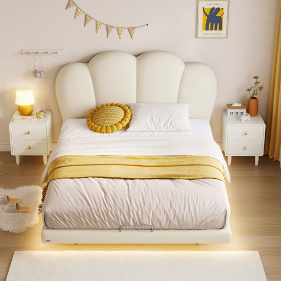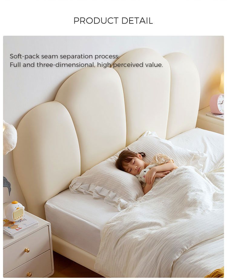 วัสดุ: หัวเตียงทำจากผ้าเทคโนโลยีที่ทำความสะอาดง่ายและทนทาน + โครงไม้เนื้อแข็ง