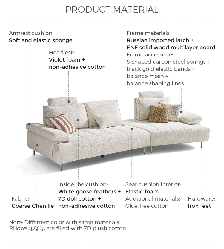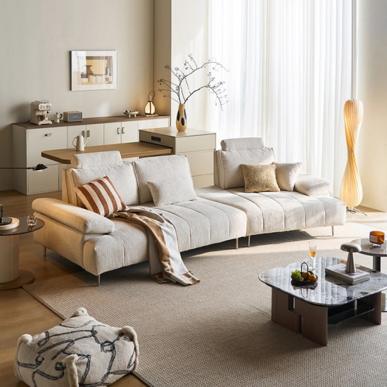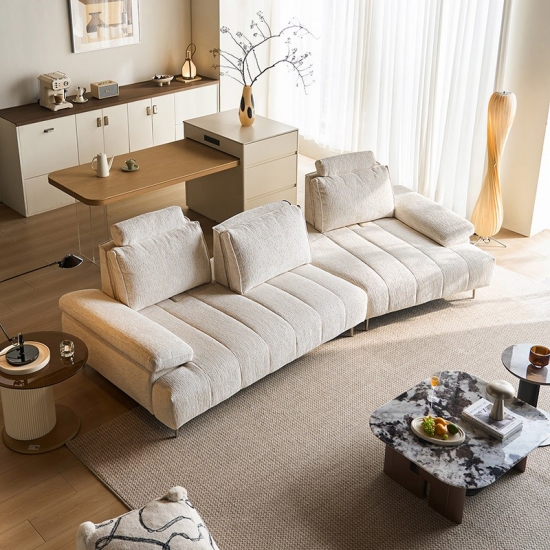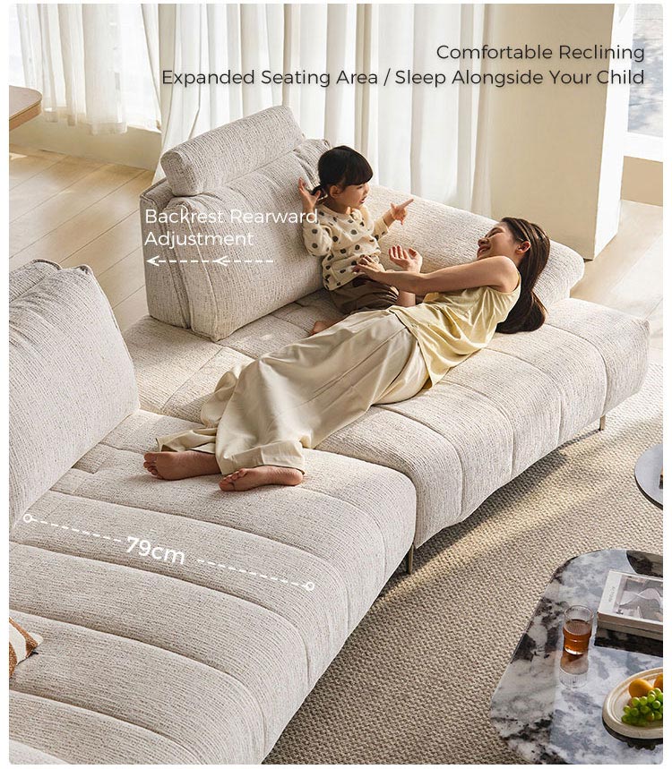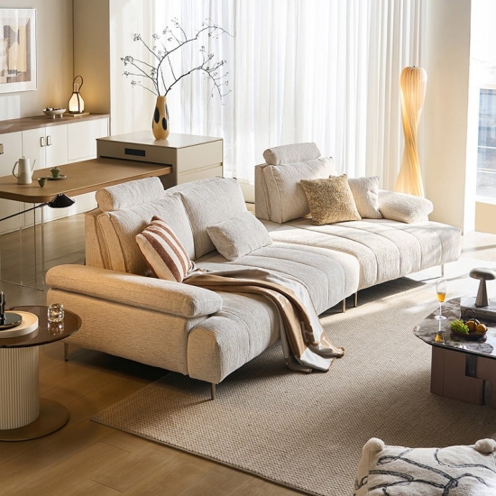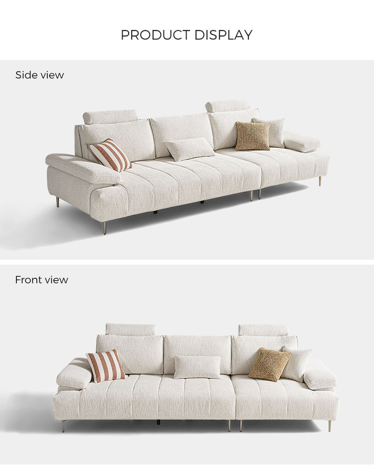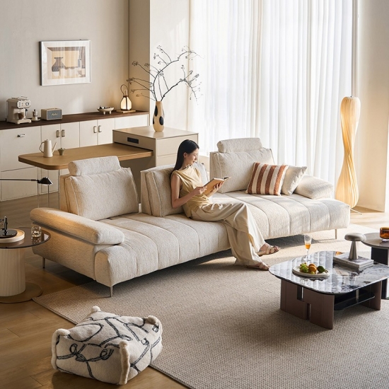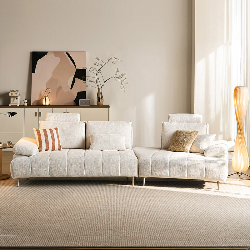 โซฟาผ้าสีขาวสไตล์มินิมอลทันสมัยนี้ ผสานความสวยงามล้ำสมัยเข้ากับฟังก์ชันการใช้งานตามหลักสรีรศาสตร์ได้อย่างลงตัว ผลิตจากผ้าไนลอนคุณภาพสูง ให้สัมผัสที่อ่อนโยนต่อผิว พร้อมคุณสมบัติทนทานต่อการสึกหรอและดูแลรักษาง่าย จุดเด่นคือ ระบบพนักพิงศีรษะที่ปรับได้หลายระดับ ช่วยให้ผู้ใช้สามารถเปลี่ยนท่าทางได้อย่างอิสระตามพฤติกรรมการนั่ง พร้อมการรองรับอย่างครอบคลุมตั้งแต่กระดูกสันหลังไปจนถึงคอ